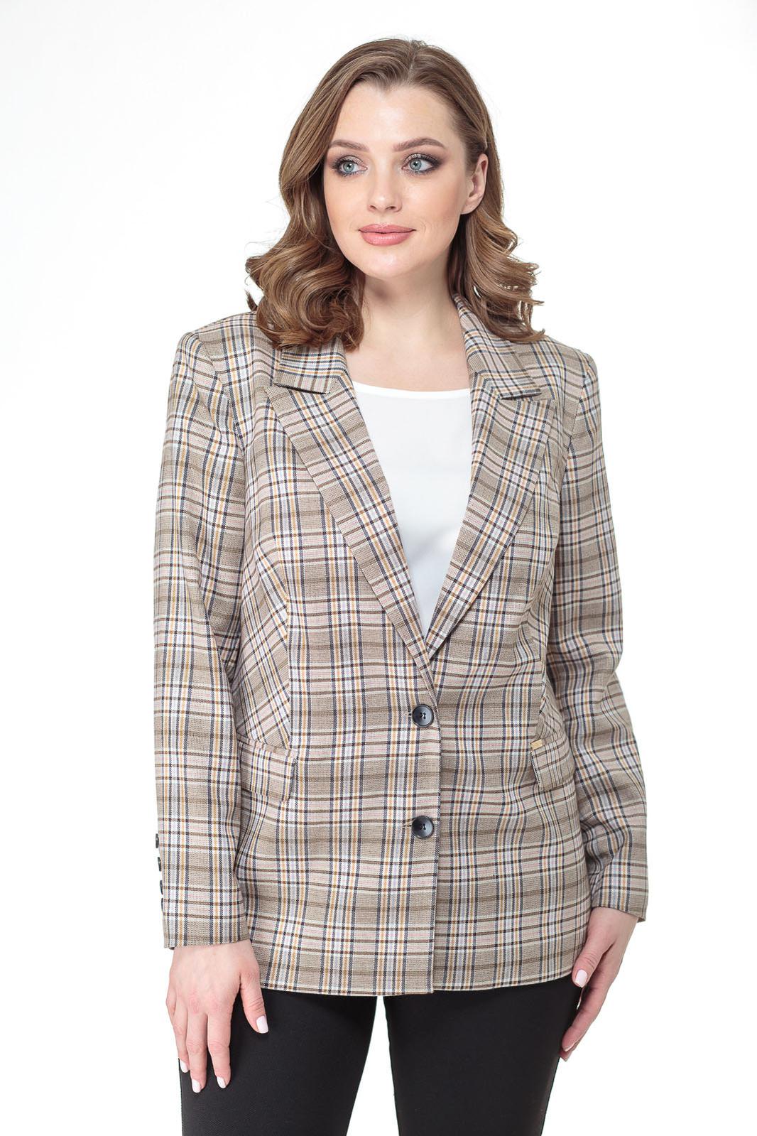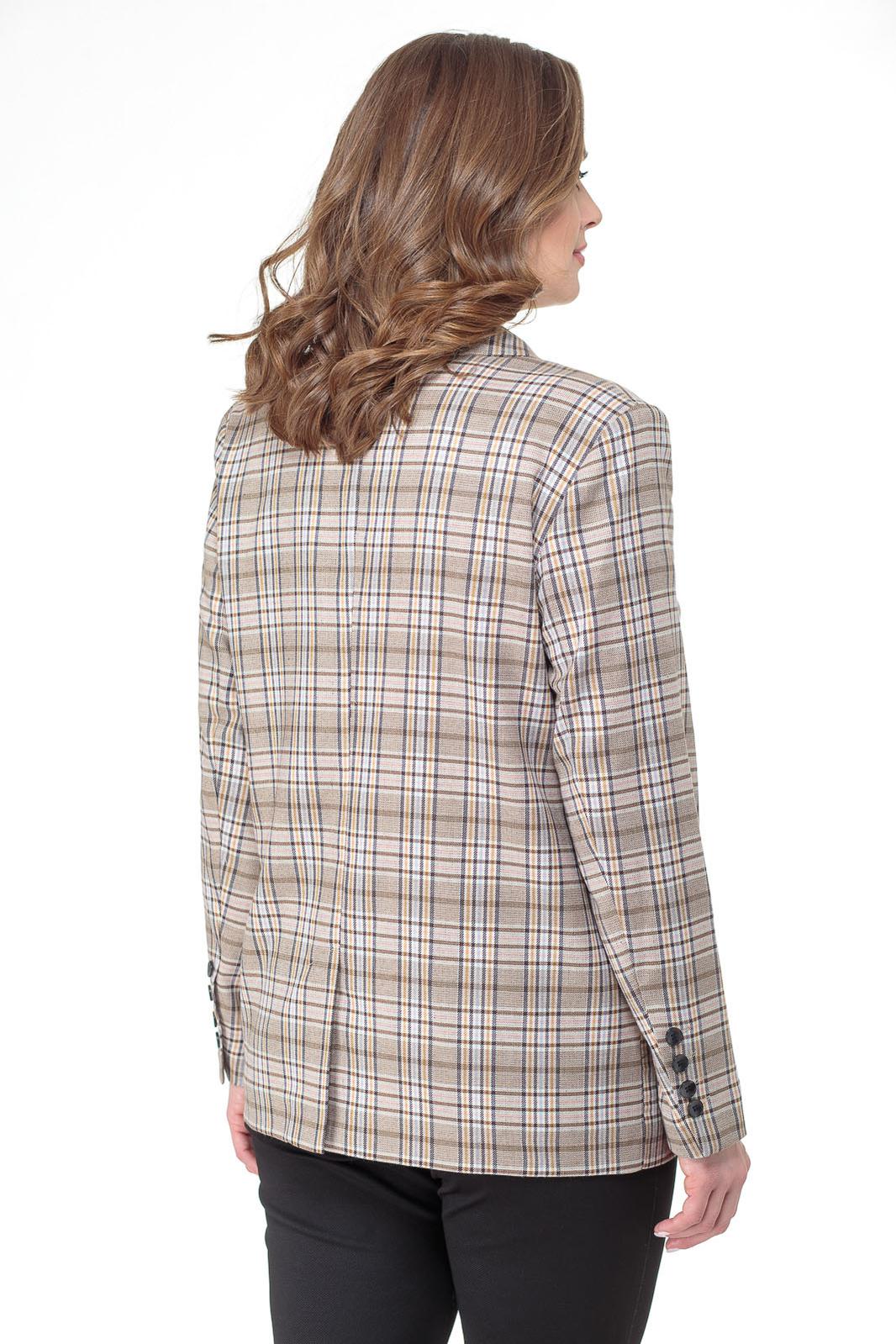 Жакет прямого силуэта, с центральной бортовой застежкой на 2 петли, 2 пуговицы. Подкладка только по переду. Жакет с подплечниками. По переду рельефы и имитация карманов с клапаном. Воротник пиджачного типа. Рукав втачной двухшовный, длинный. По спинке средний шов и шлица. Жакет выполнен из костюмной ткани средней плотности.