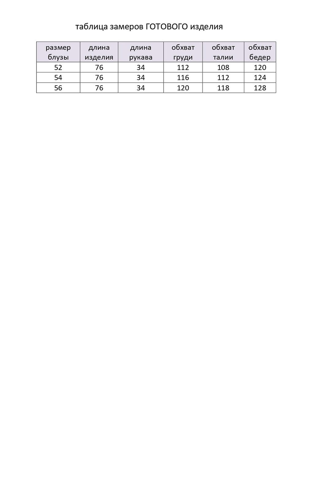 Блуза прямого силуэта, свободная, удлиненная, слегка расширенная к низу, стильное решение выгодно подчеркивает талию. Воротник классический. рубашечный. По переду блузки, нагрудные вытачки, застежка в виде планки на петли, пуговицы. Рукав втачной обработан манжетой, длина до уровня локтя. В боковых швах изделия предусмотрены разрезы