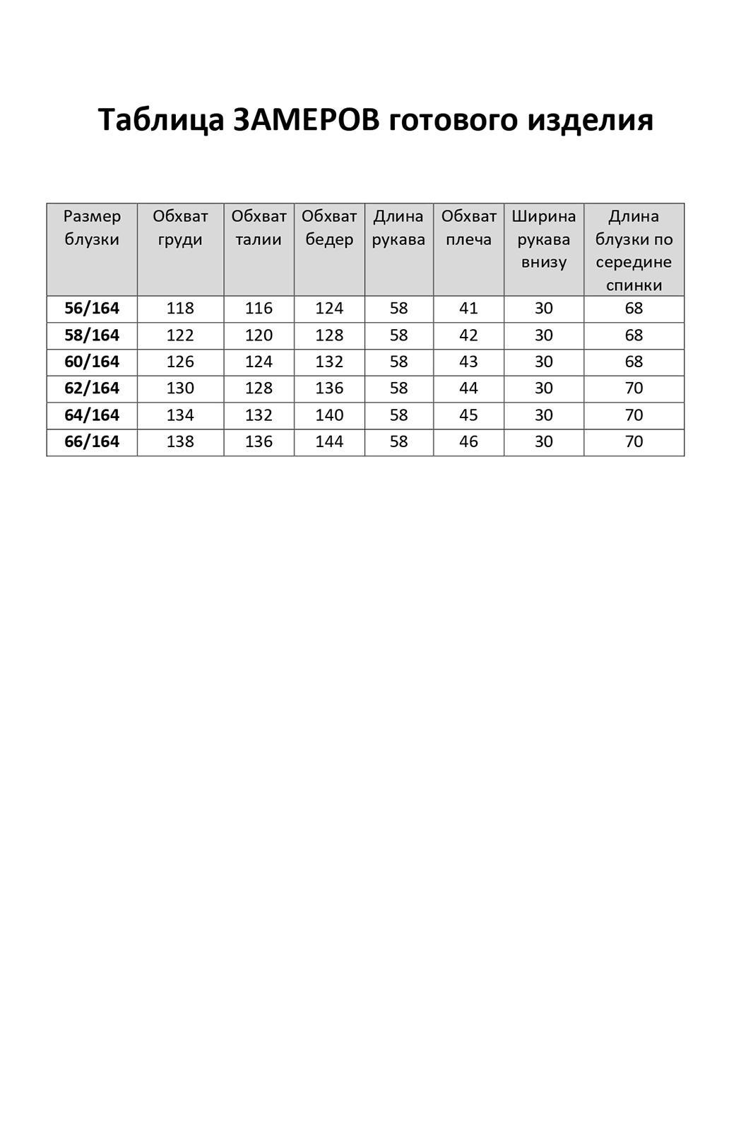 - Размерный ряд: 56-66