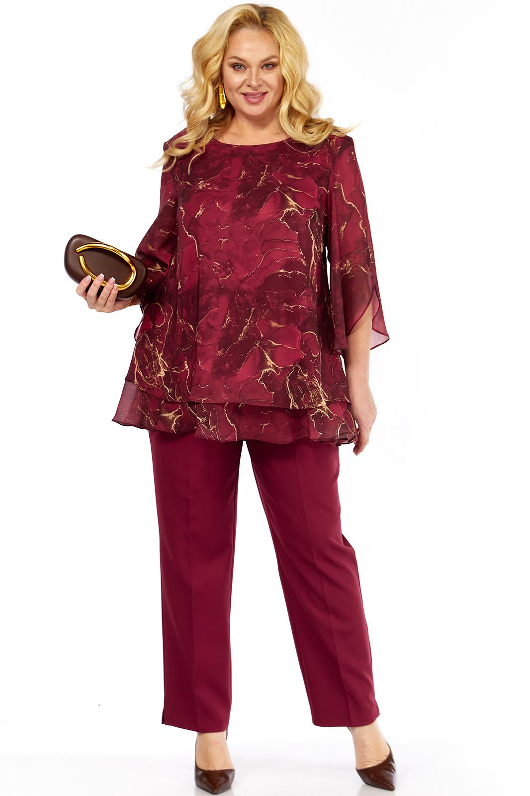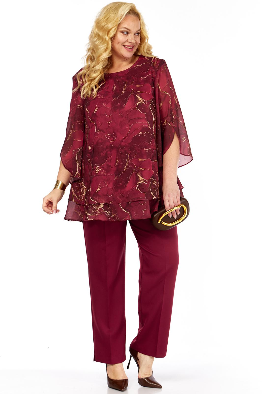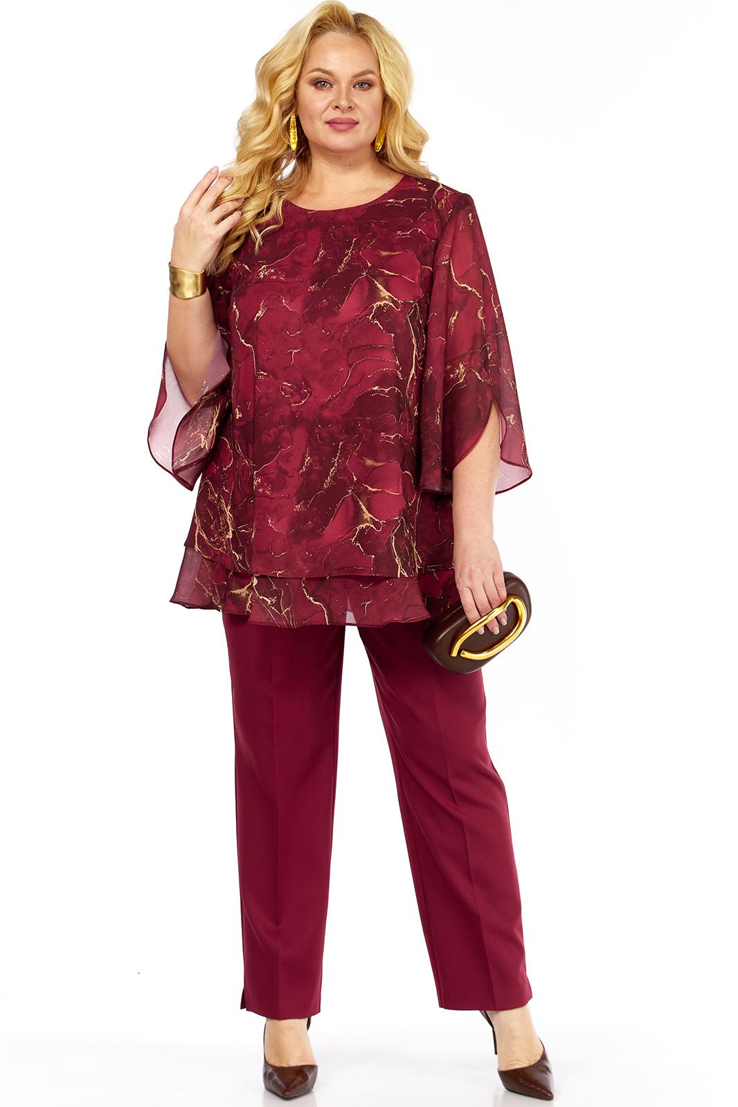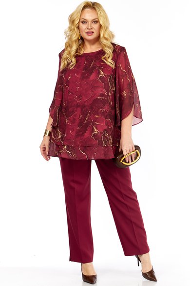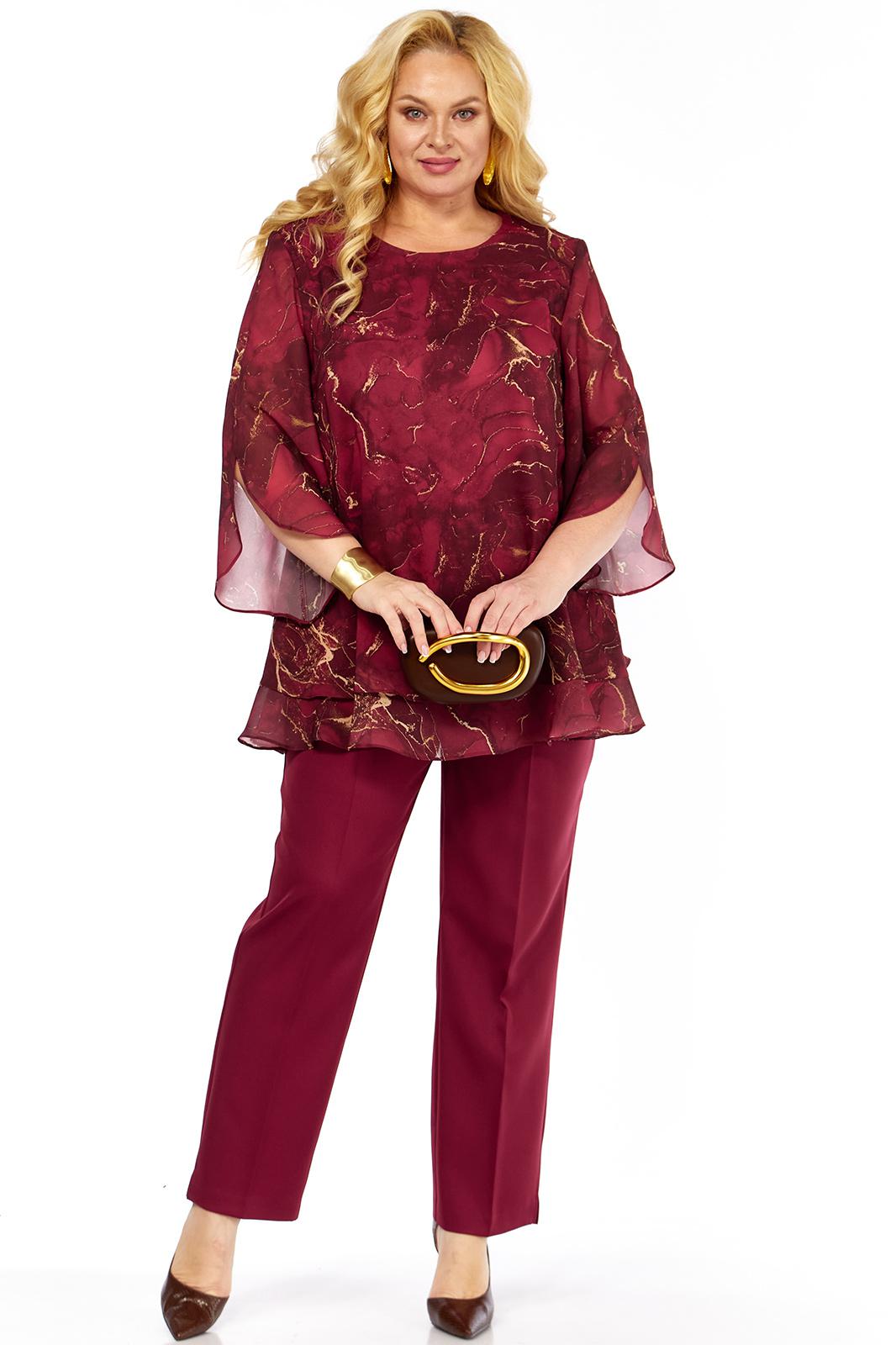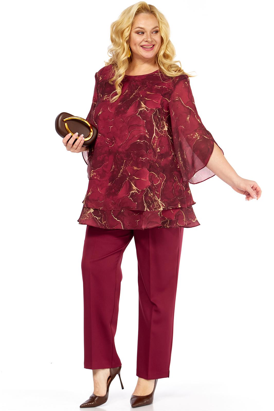 - Тип ткани: Блузка – полиэстер 100% (шифон). Брюки – полиэстер 50%, вискоза 50%
