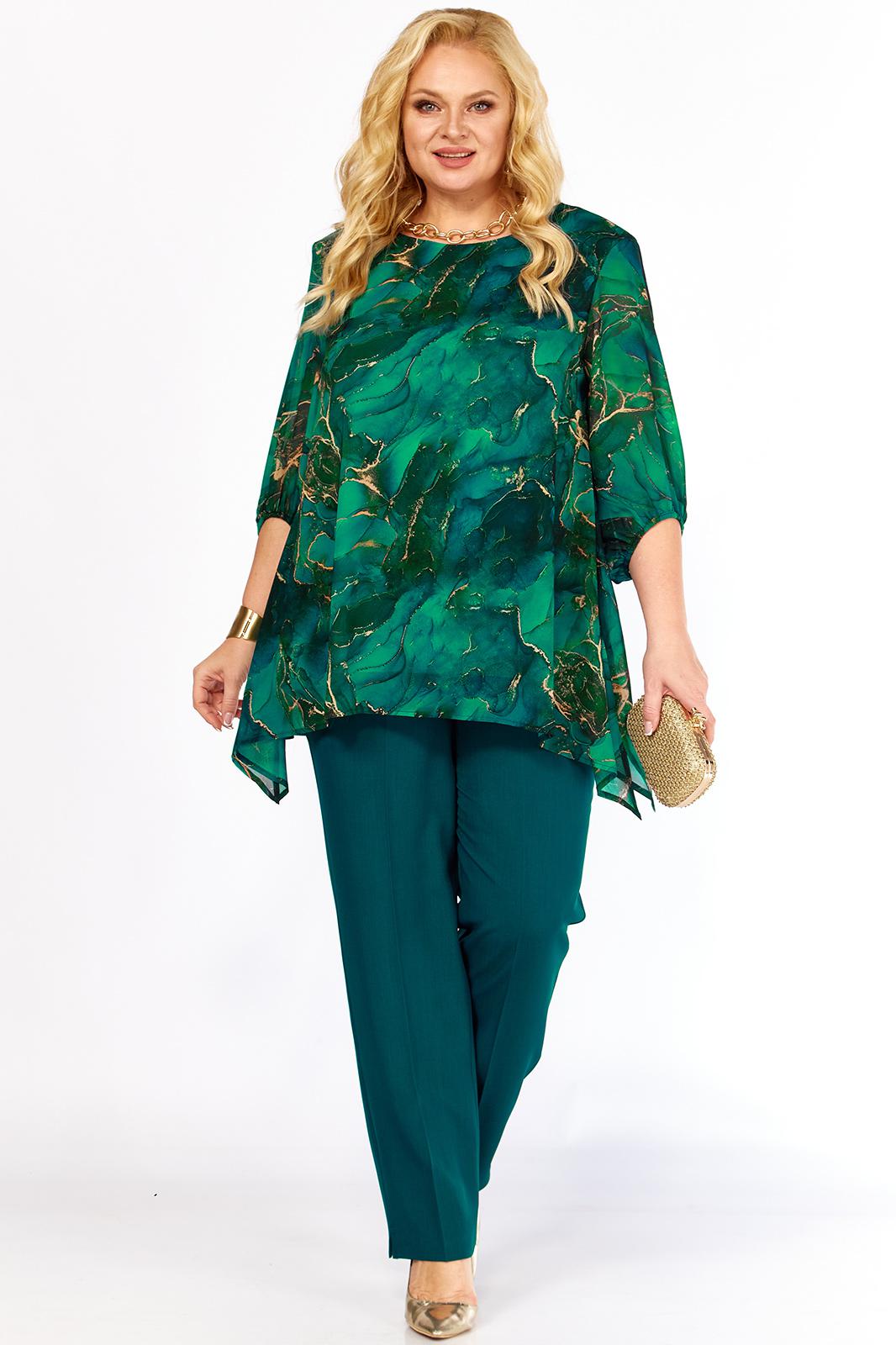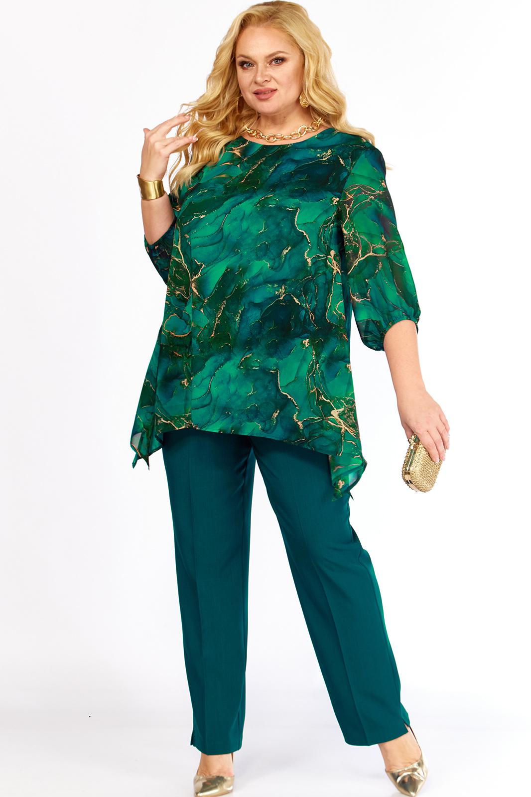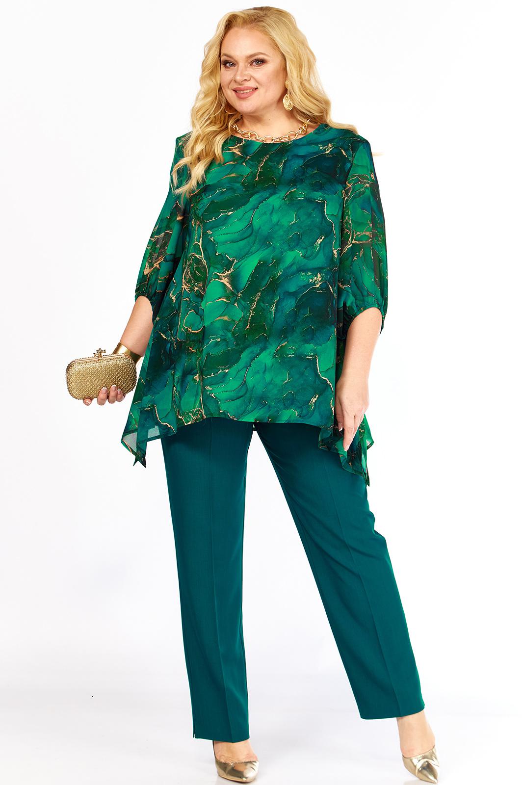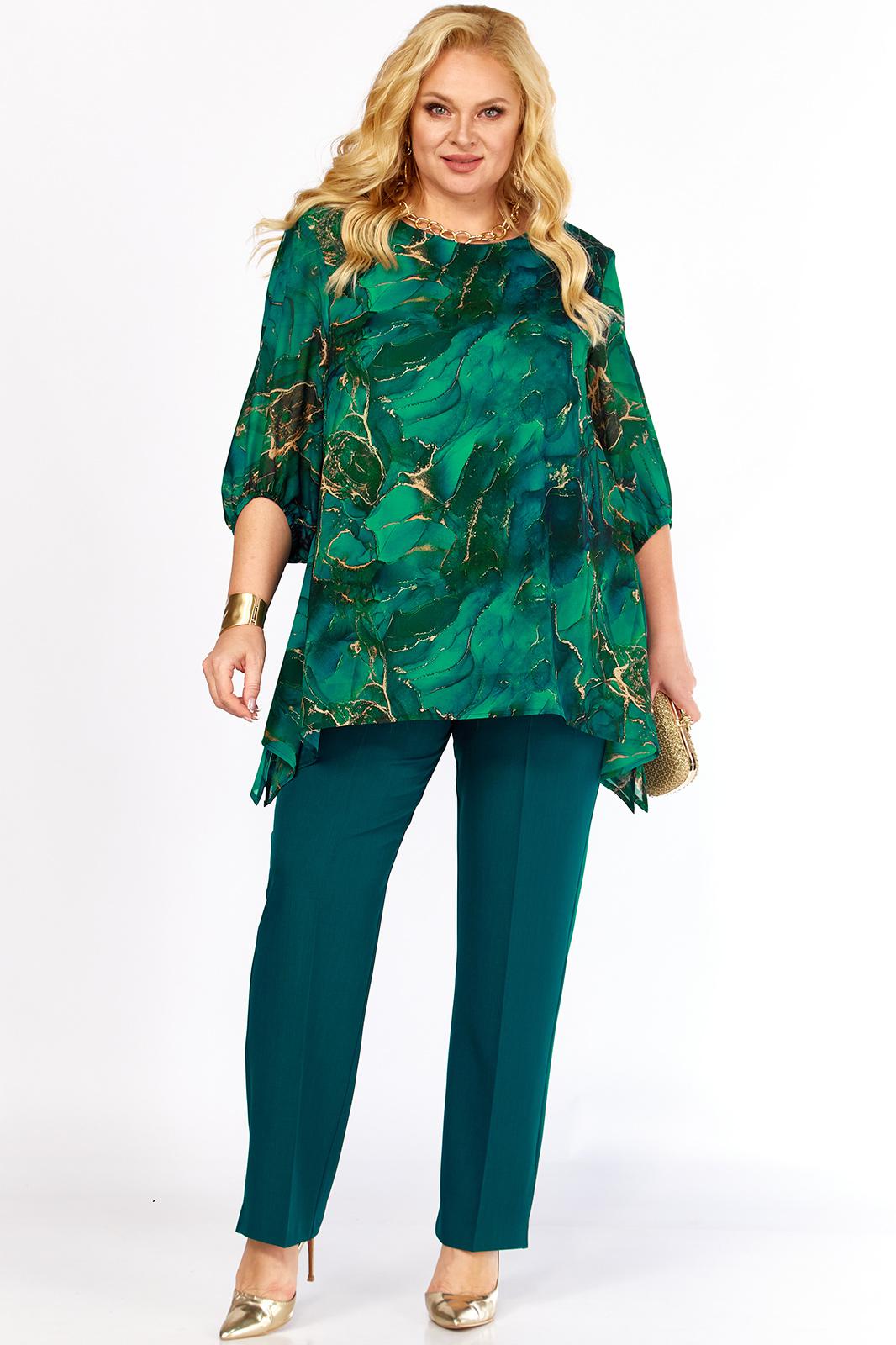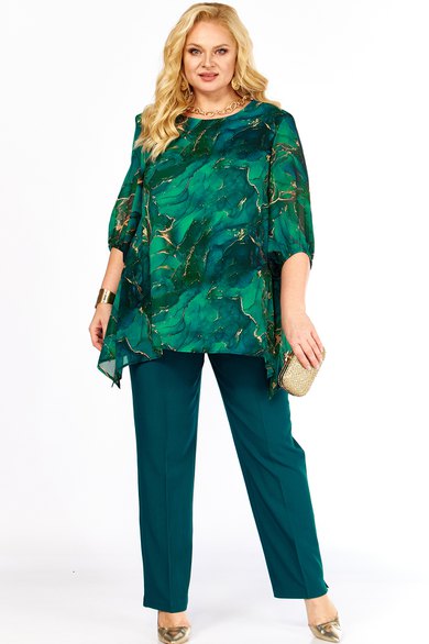 - Тип ткани: Блузка – полиэстер 100% (шифон). Брюки – полиэстер 50%, вискоза 50%