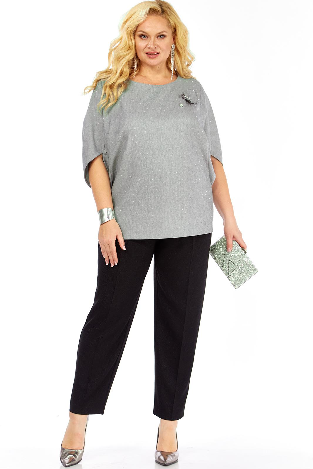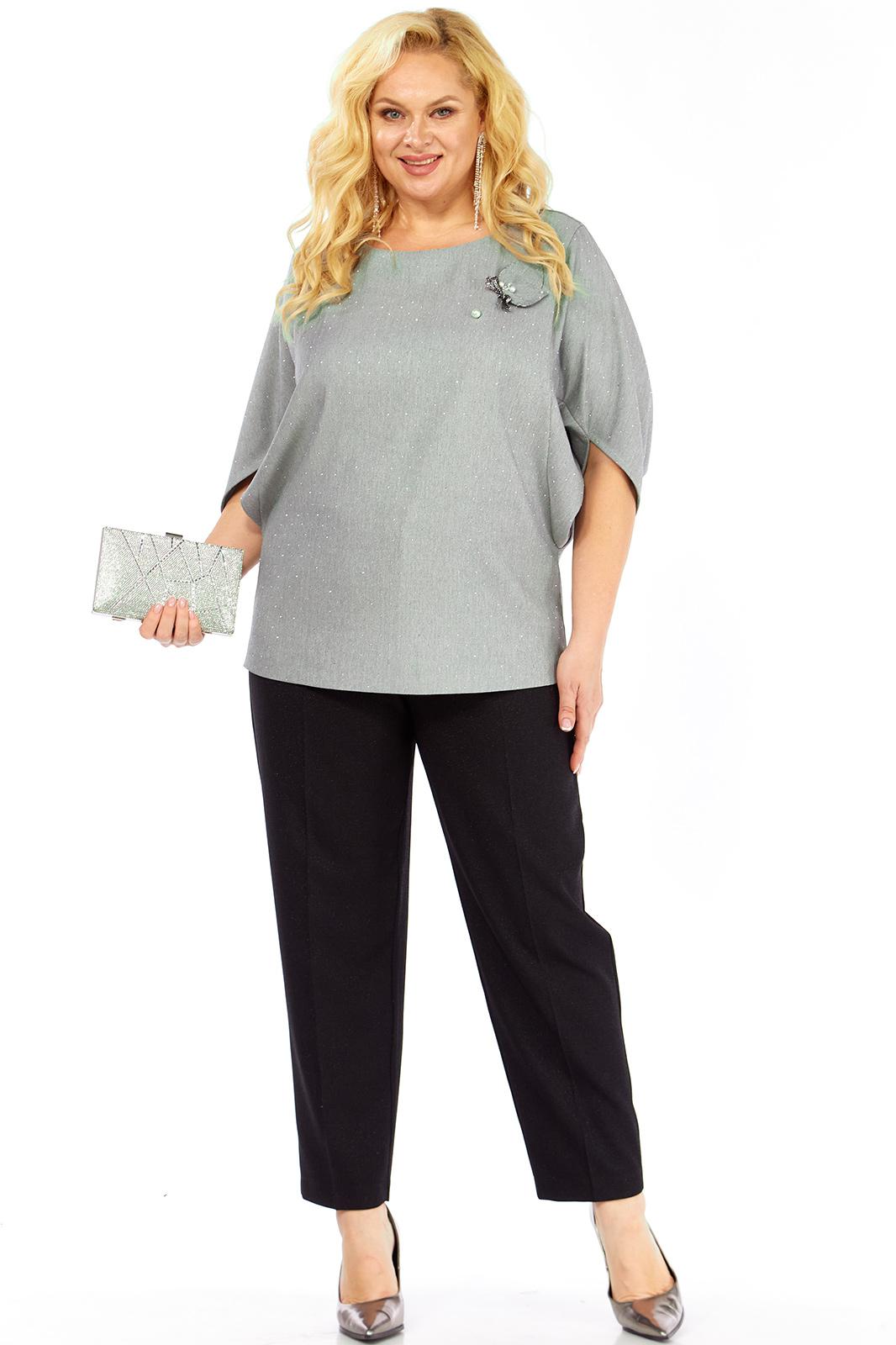 является съемная дизайнерская брошь. Брюки слегка зауженные к