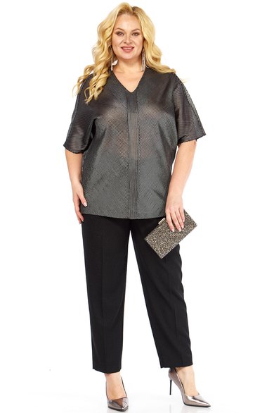 предметный, состоит из блузки, и брюк. Блуза полуприлегающего