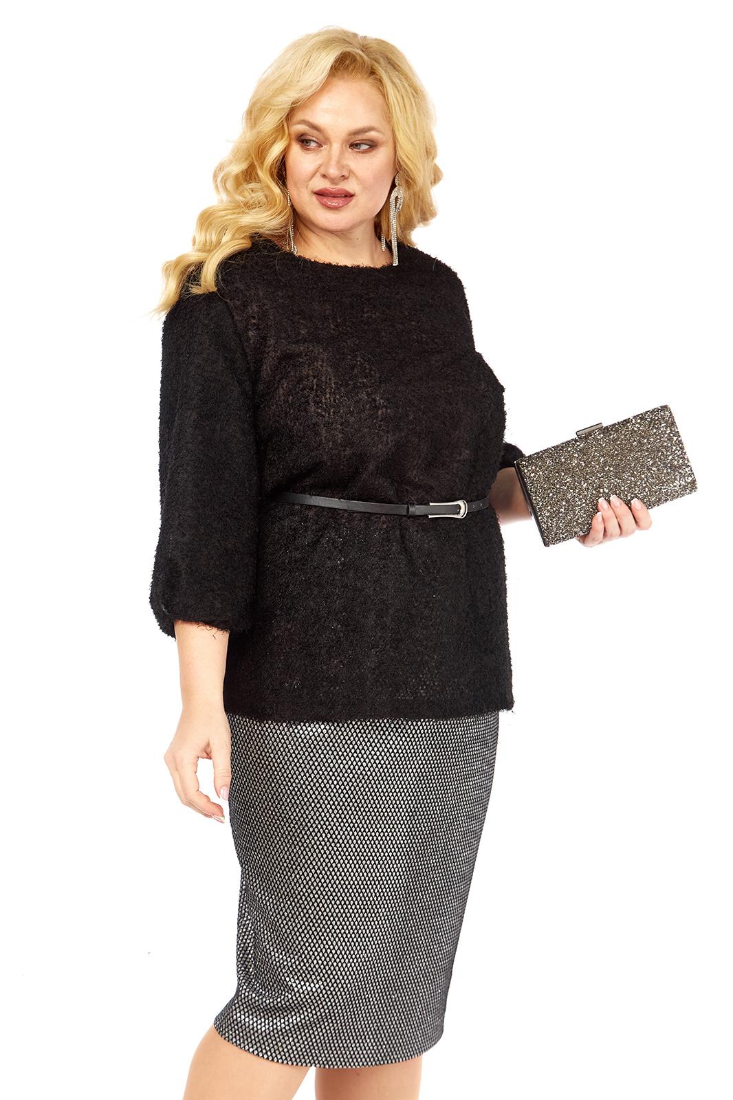 из блузки и юбки. Блузка полуприлегающего силуэта. По переду