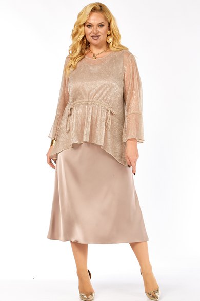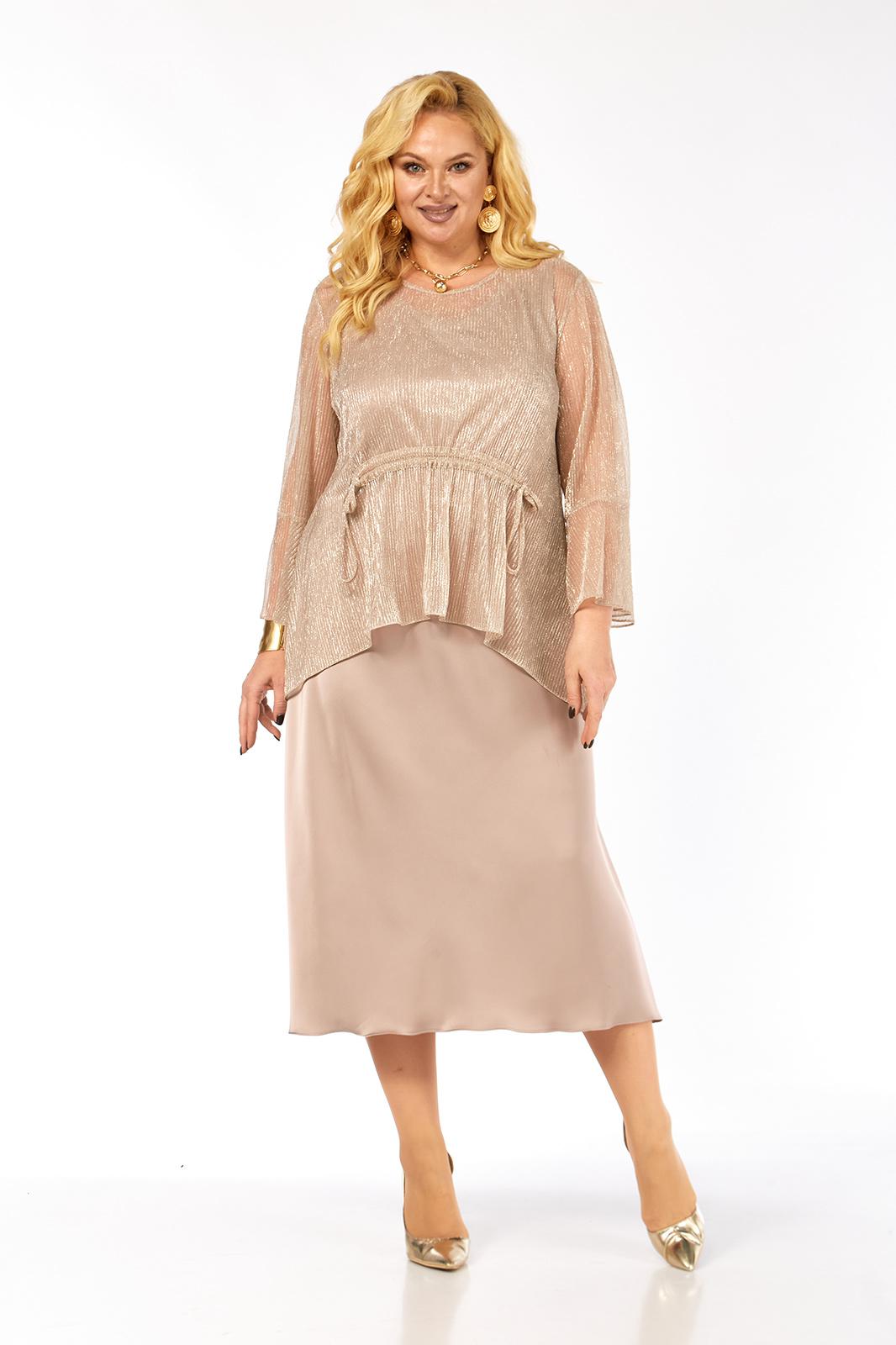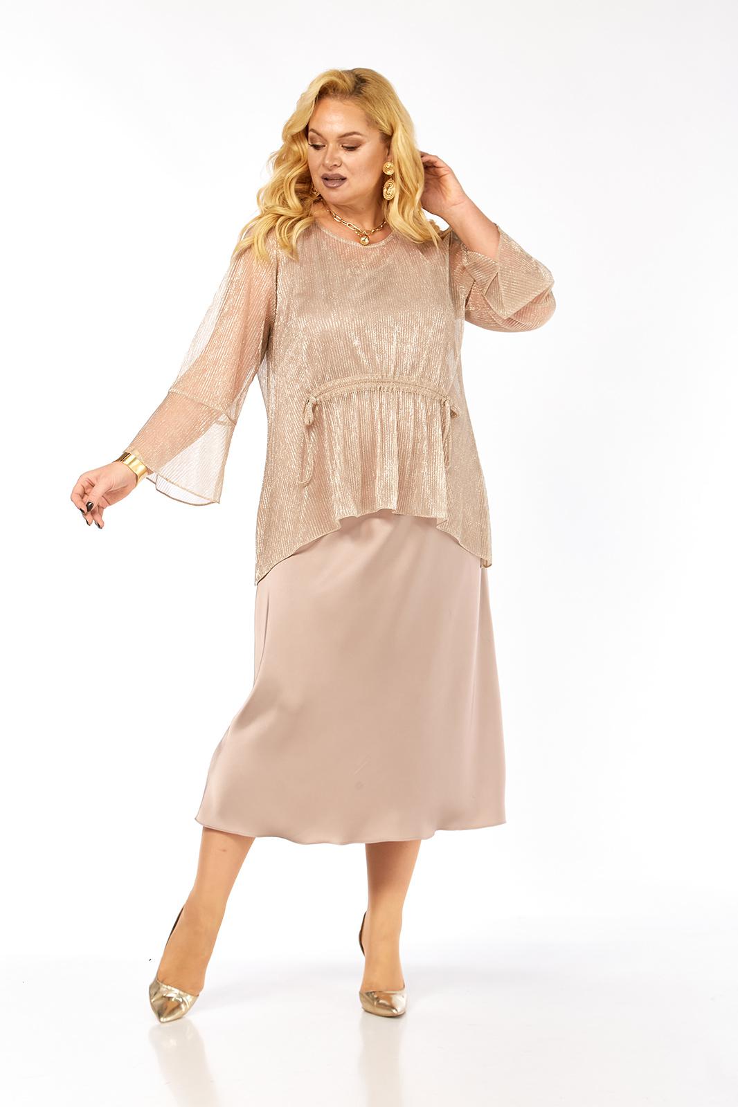 из двух изделий платье и блуза. Платье полуприлегающего силуэта,