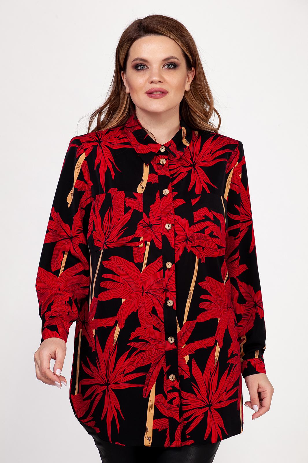 Рубашка женская, классическая, прямого силуэта, выполнена из хлопка. Застёжка центральная на пуговицы. Воротник рубашечного типа, отложной с отрезной стойкой. Рукав длинный ,одношовный. Низ рукава оформлен притачной манжетой на одну пуговицу. На полочке нагрудная выточка и два больших накладных кармана. Низ рубашки оформлен по прямой.