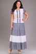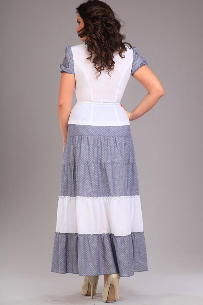 Комплект выполнен из шитья на хлопчатобумажной основе, шифона и батиста. Юбка на подкладке, застежка на потайную молнию сзади, пояс с резинкой по бокам. Ремень - съемный в цвет отделочной ткани. Длина жакета: 55см. Длина юбки: 97,5см.