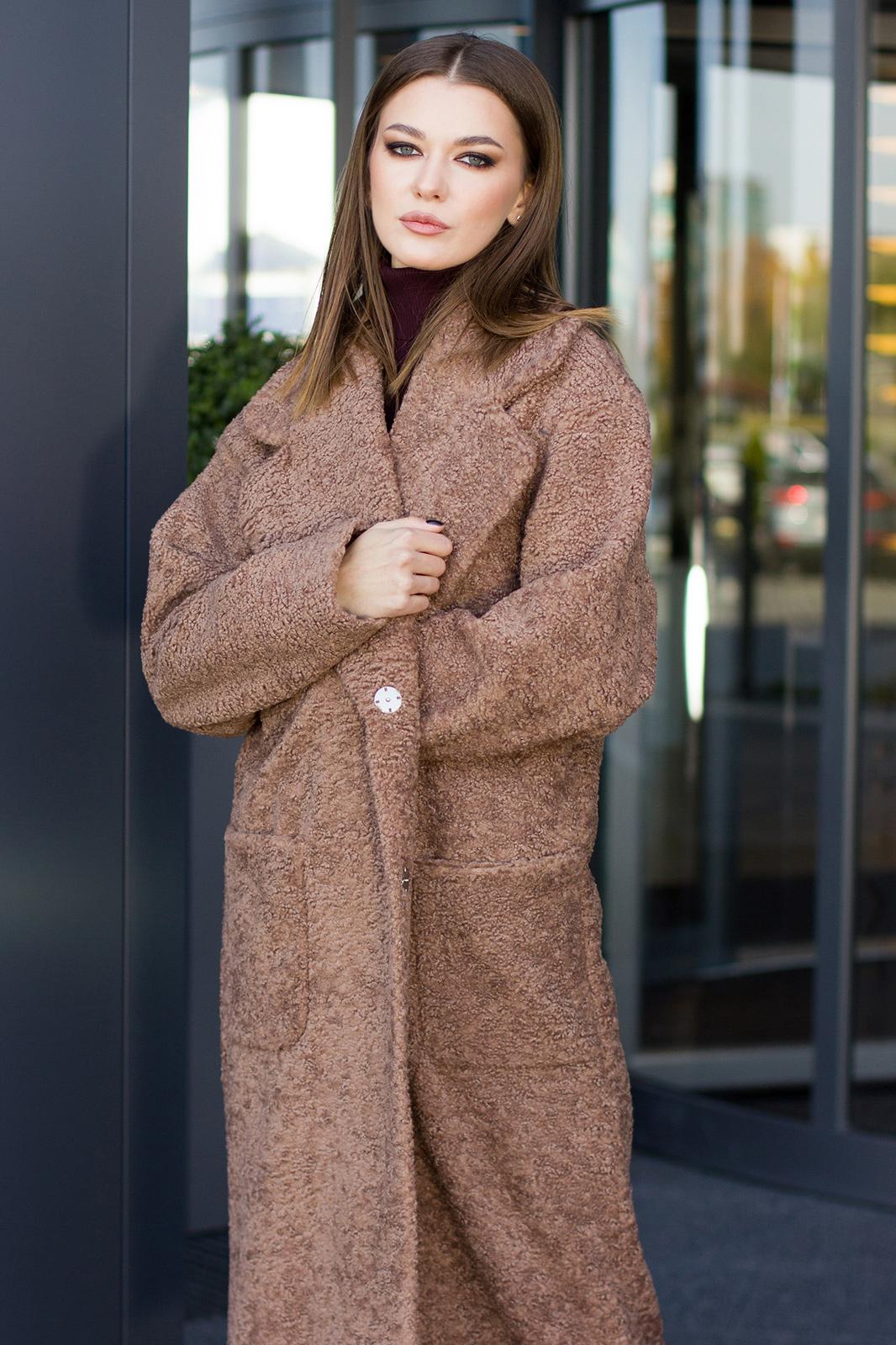 Пальто выполнено из однотонной пальтовой ткани с ворсом. Пальто прямого силуэта. Спереди застежка центральная на кнопки, карманы накладные. Спинка цельная. Плечевой шов спущен. Рукав одношовный, с локтевой вытачкой. Пальто без подкладки.