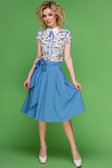 Юбка женская из легкой струящейся ткани, Изделие на прилегающей кокетке с потайной молнией по среднему шву.По переду и заду изделия заложены бантовые складки.В комплектации съемный пояс-бант, выполненный из той же ткани, что и основное изделие.