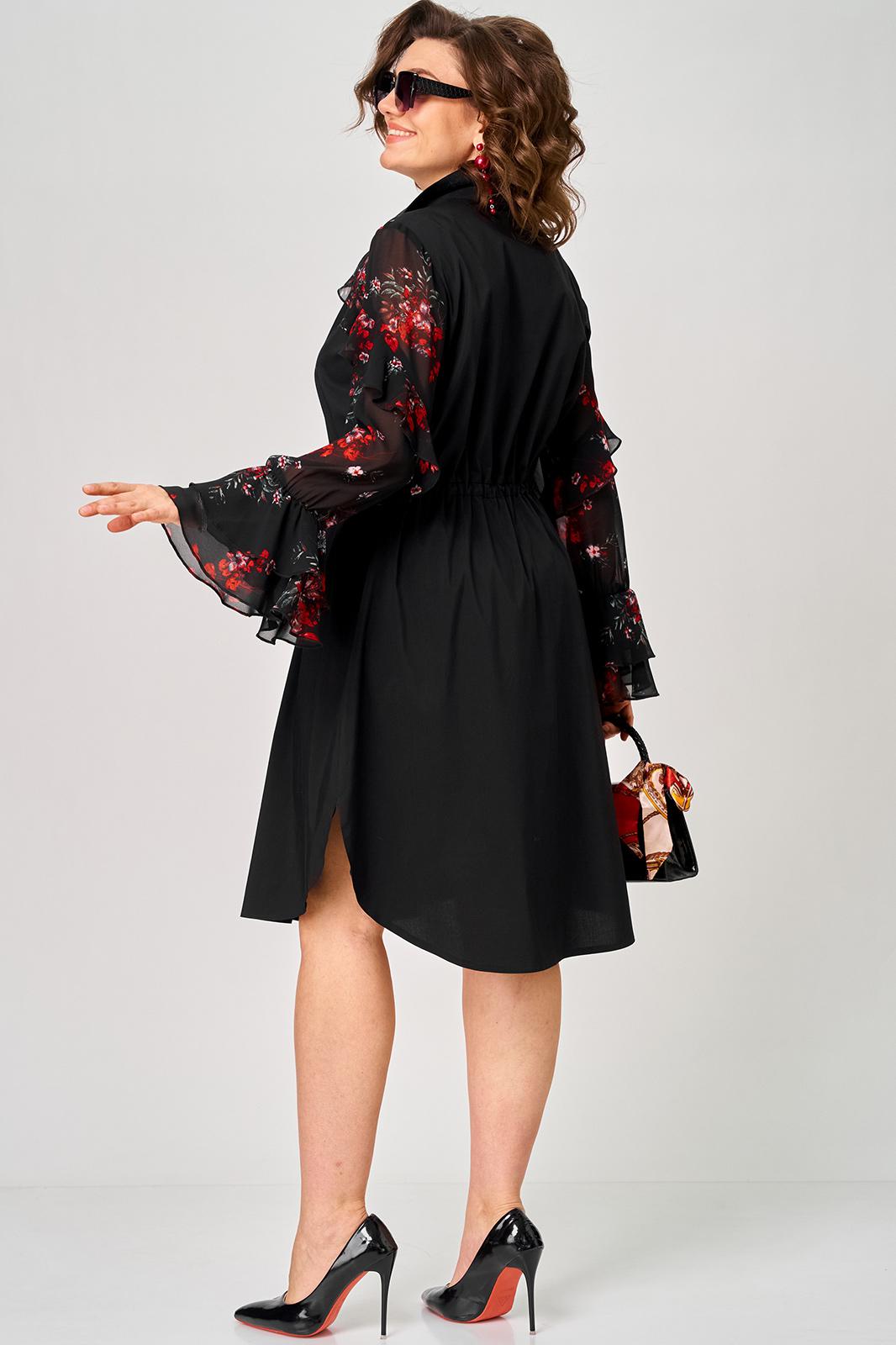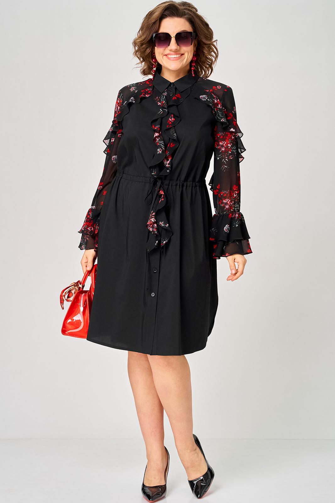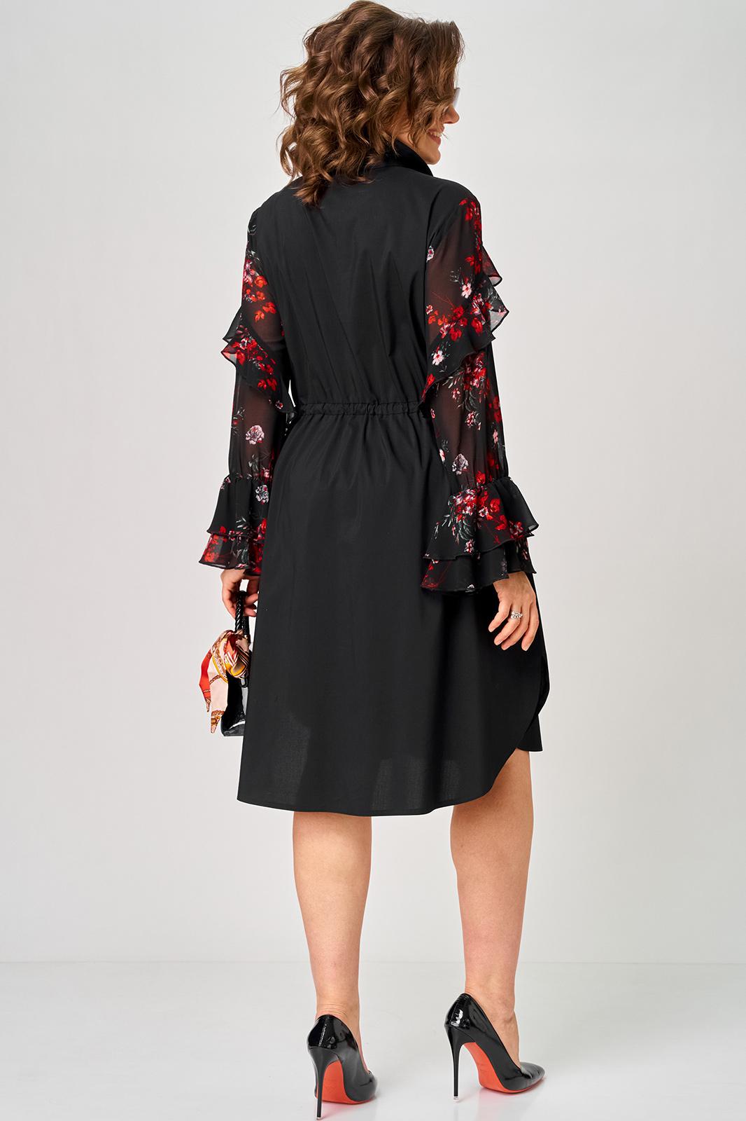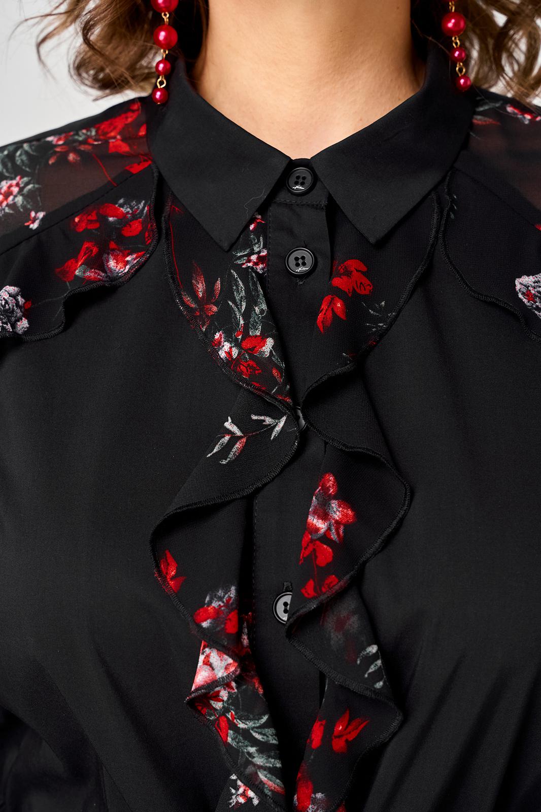 Платье женское шикарное стильное нарядно повседневное прямого силуэта. Выполнено из хорошего хлопка в сочетании с красивым легким воздушным принтованным шифоном. Вырез горловины воротник на стойке рубашечного типа, застежка доверху на обметанные петли и пуговицы, что дает возможность регулировать глубину декольте. Рукав втачной по низу на притачной манжете из двух воланов. По талии втянута кулиса с помощью которой регулируется желаемый размер талии и скрадываются все недостатки. Низ платья в стильном современном дизайне - фигурный. В боковых швах обработаны небольшие разрезы. Декором платья служат очень красивые воланы из шифона.