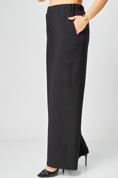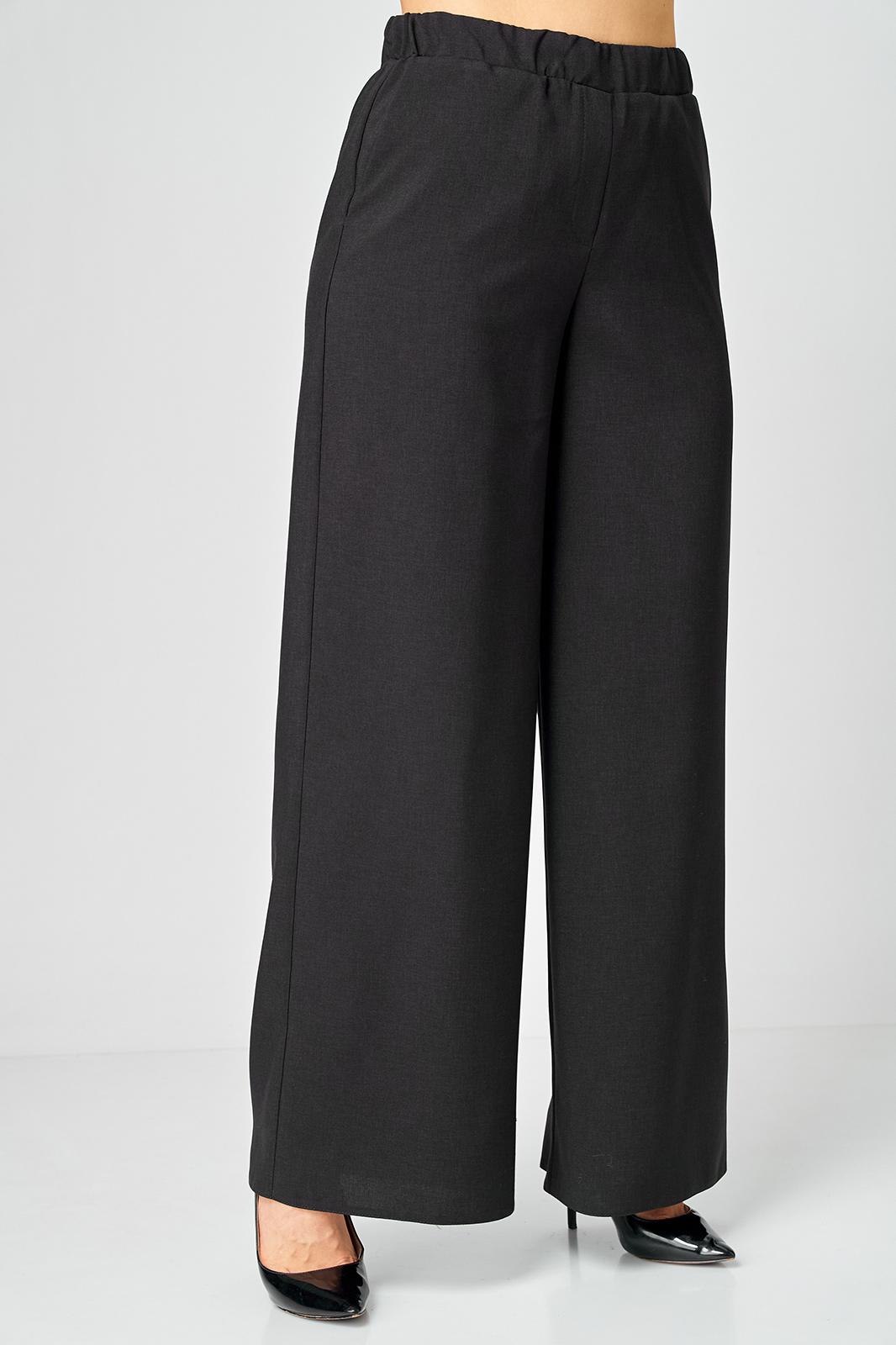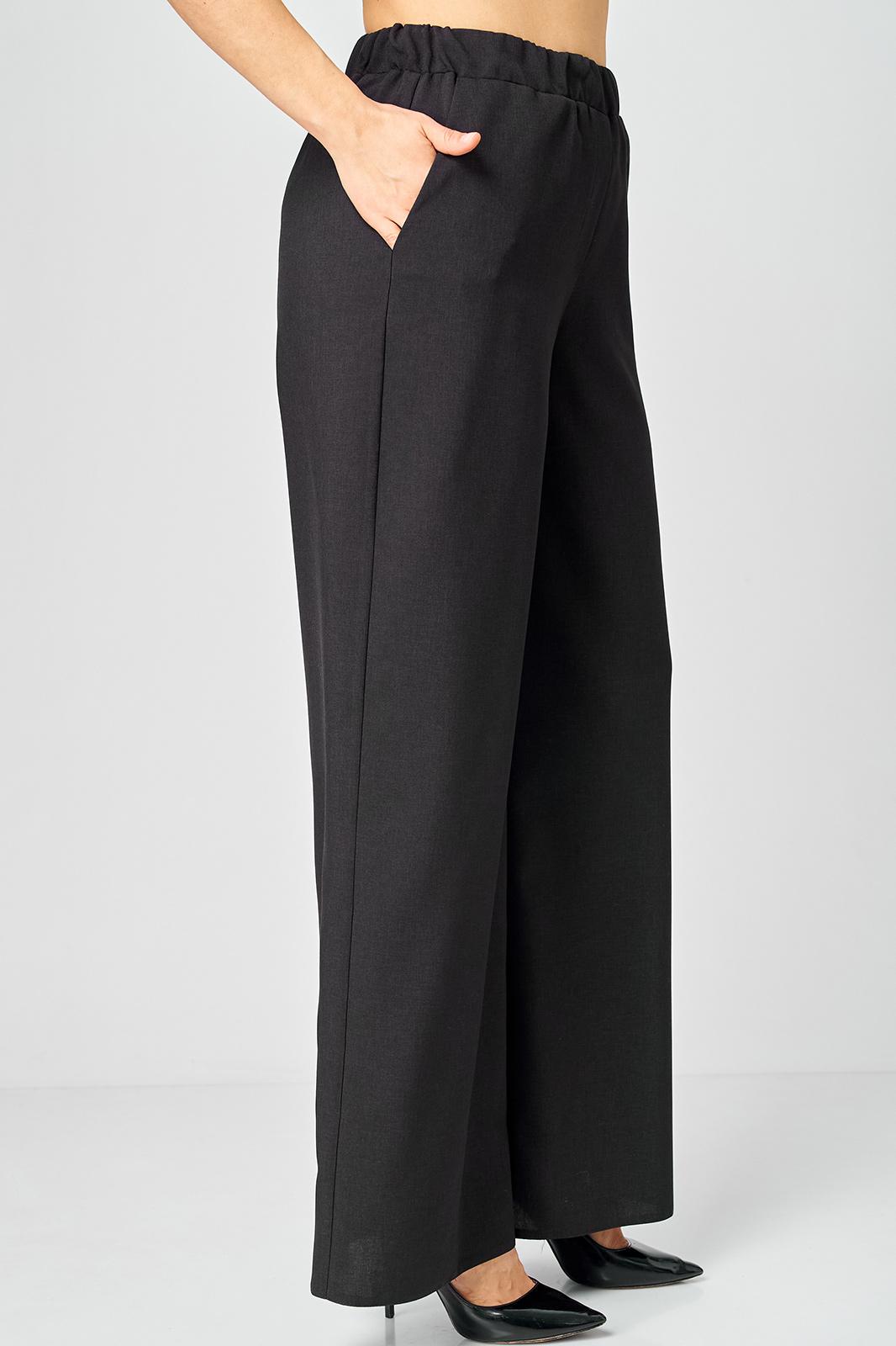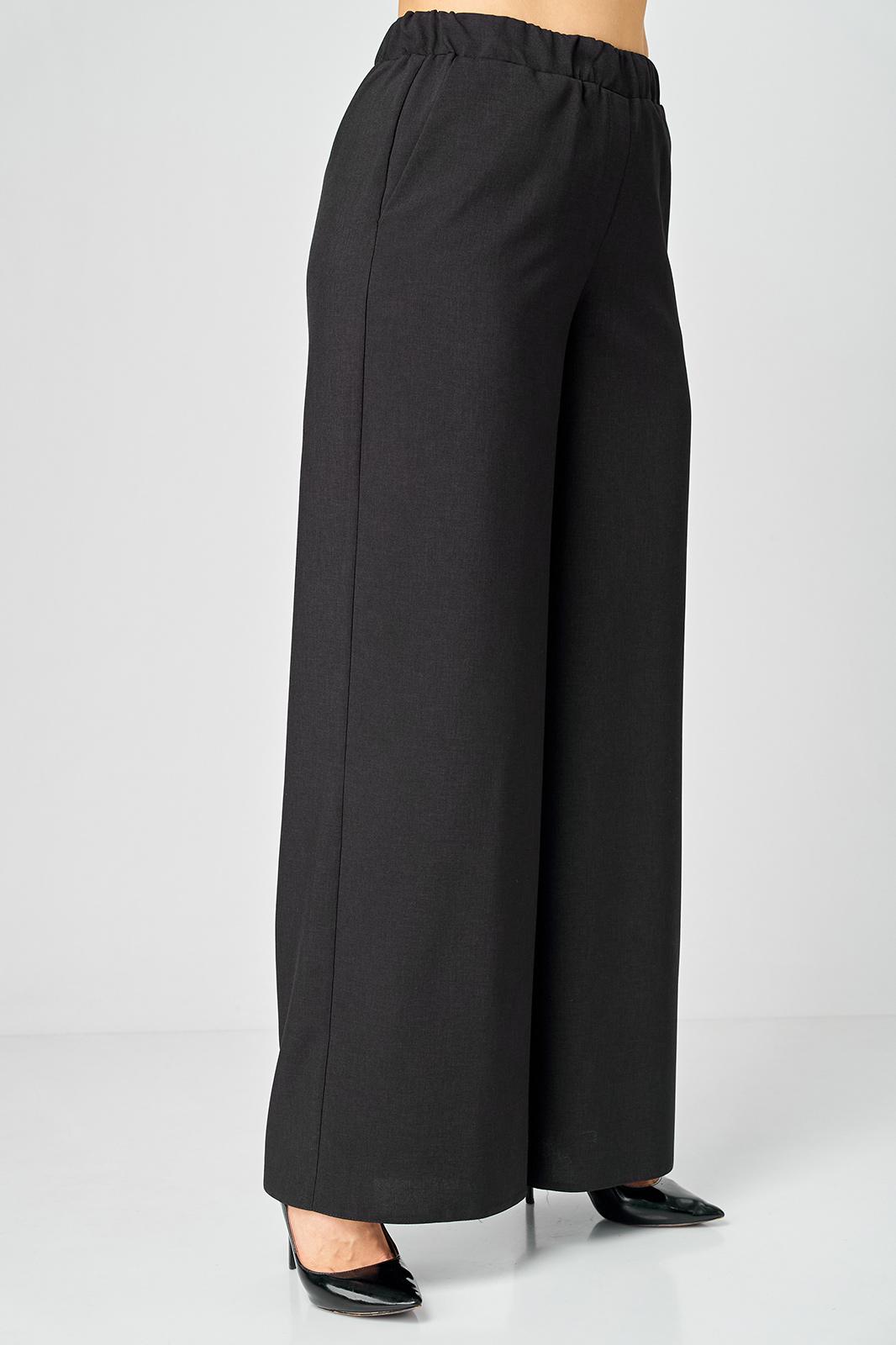 Брюки женские шикарного кроя палаццо на притачном поясе. Пояс по кругу на широкой резинке, что дает возможность чувствовать свободу движений. В боковых швах обработаны карманы, которые дополняют функциональности модели и удобство в носке.