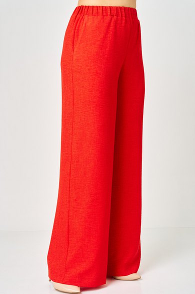 Брюки женские шикарного кроя палаццо на притачном поясе. Пояс по кругу на широкой резинке, что дает возможность чувствовать свободу движений. В боковых швах обработаны карманы, которые дополняют функциональности модели и удобство в носке.