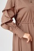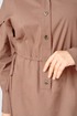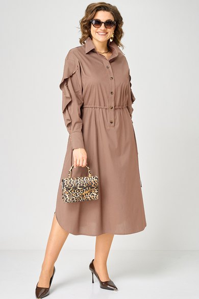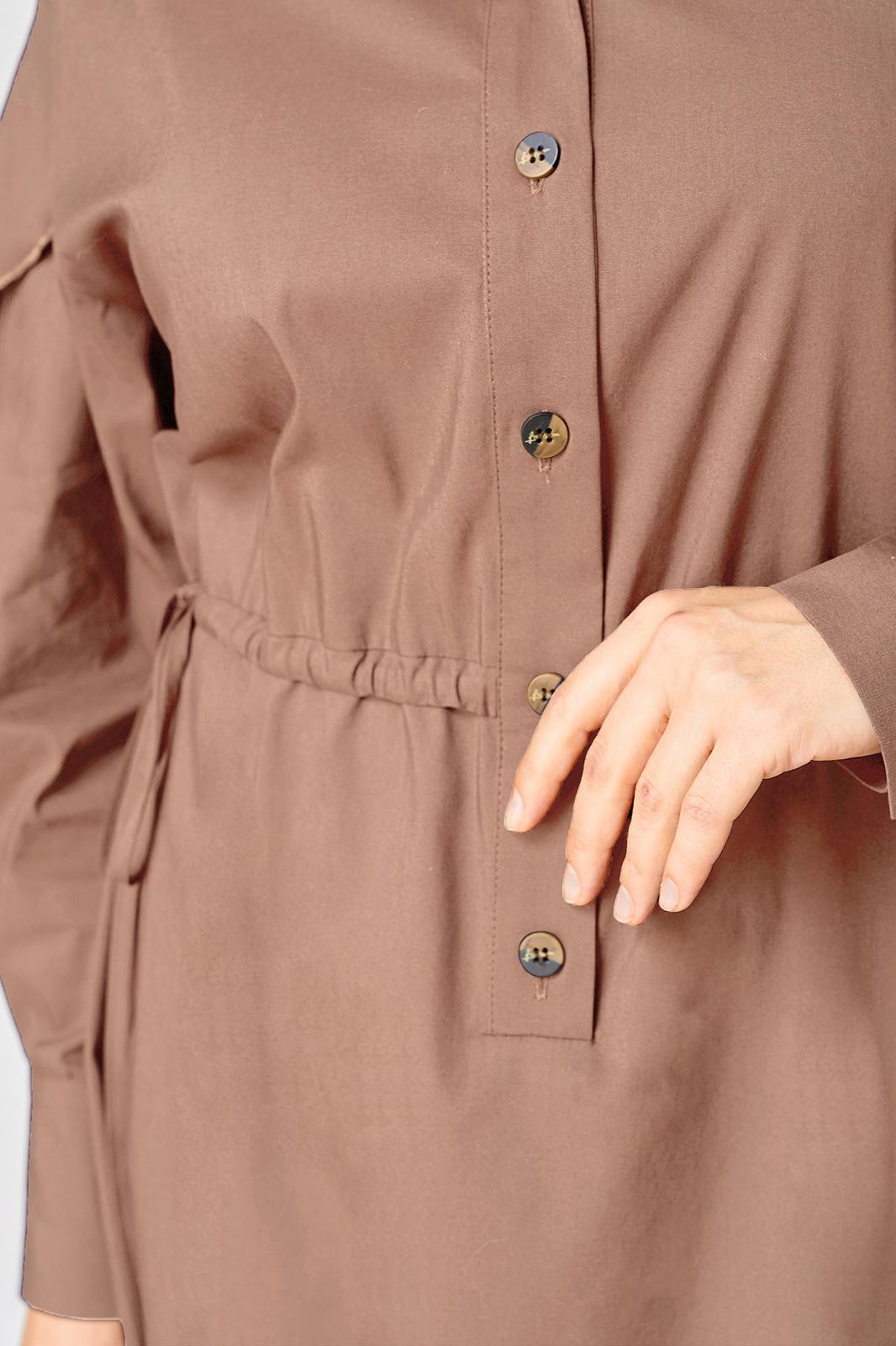 Платье женское полуприлегающего силуэта до пояса в стиле платья-рубашки, выполнено из однотонного хлопка. Трендовый фасон, который сочетает в себе коморт повседневной вещи и элегантность праздника. Вырез горловины воротник на стойке рубашечного типа, застежка планка чуть ниже талии на обметаннве петли и пуговицы. Плечо спущенное, рукав втачной по центру разрезной со вставкой в виде волана на притачной манжете, что придает изделию легкость и изюминку. По полочке и спинке кулиса с руликом входящим к боковым швам. Идеальная талия за 1 секунду. Встроенная кулиска с регулировкой - это гениальное решение, которое подстраивается под вашу фигуру и Вы сами создаете свой восхитительный образ и регулируете свои обьемы. Низ платья фигурный закругленный к боковым швам, что создает удобство в носке и небанальность в изделии. В боковых швах обработаны разрезы. Декором платья служат отделочные пуговицы, кулиска и необычные воланы по рукавам.