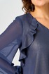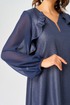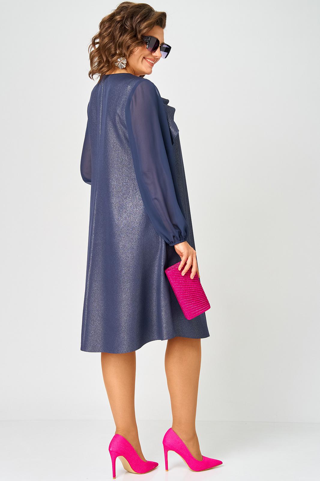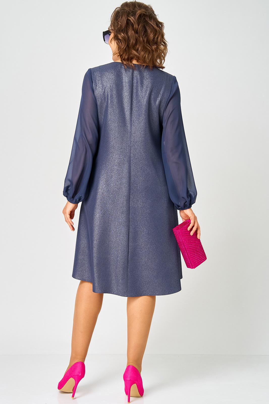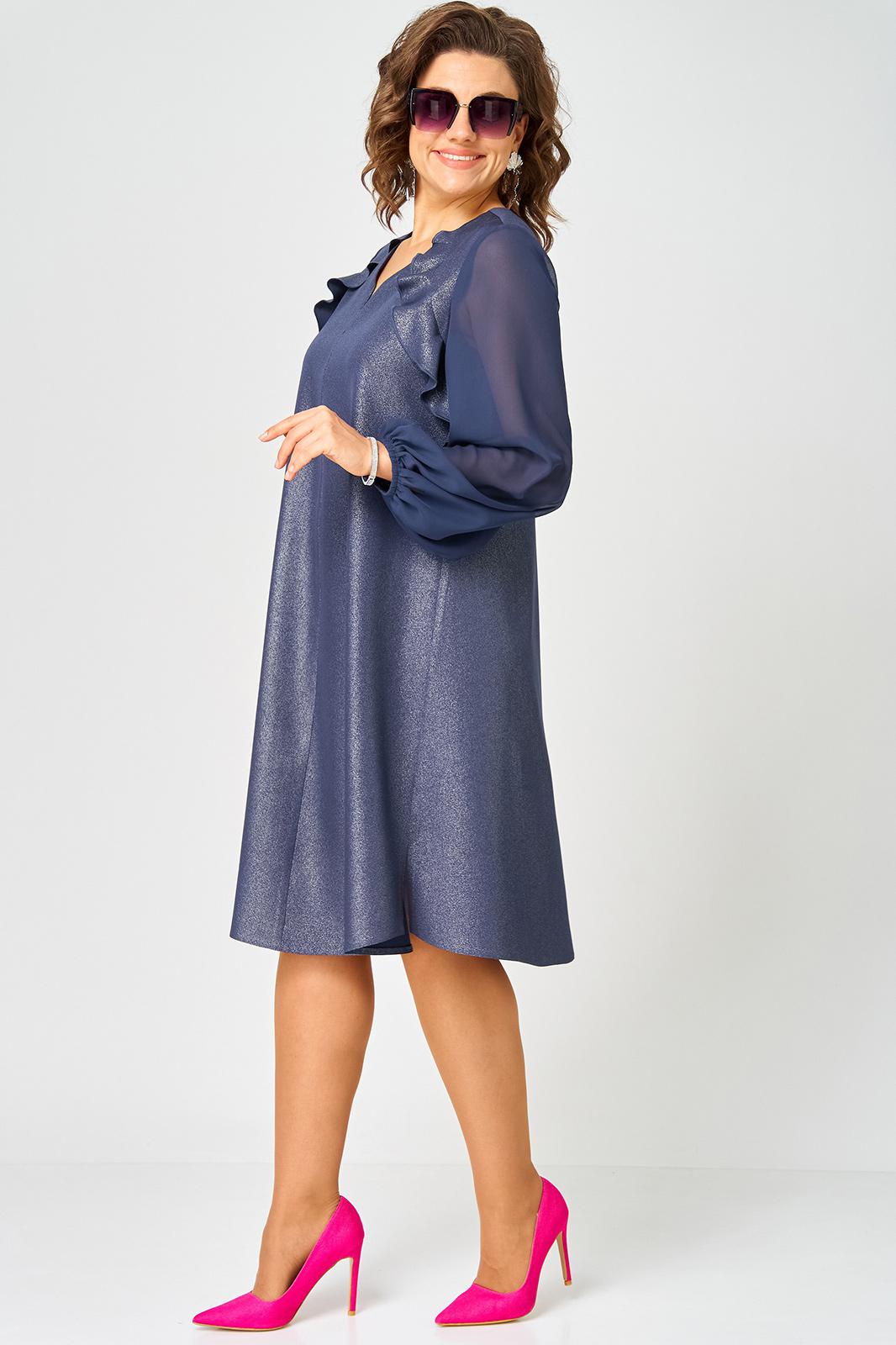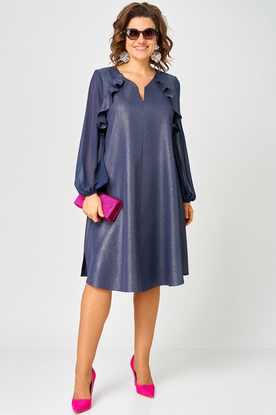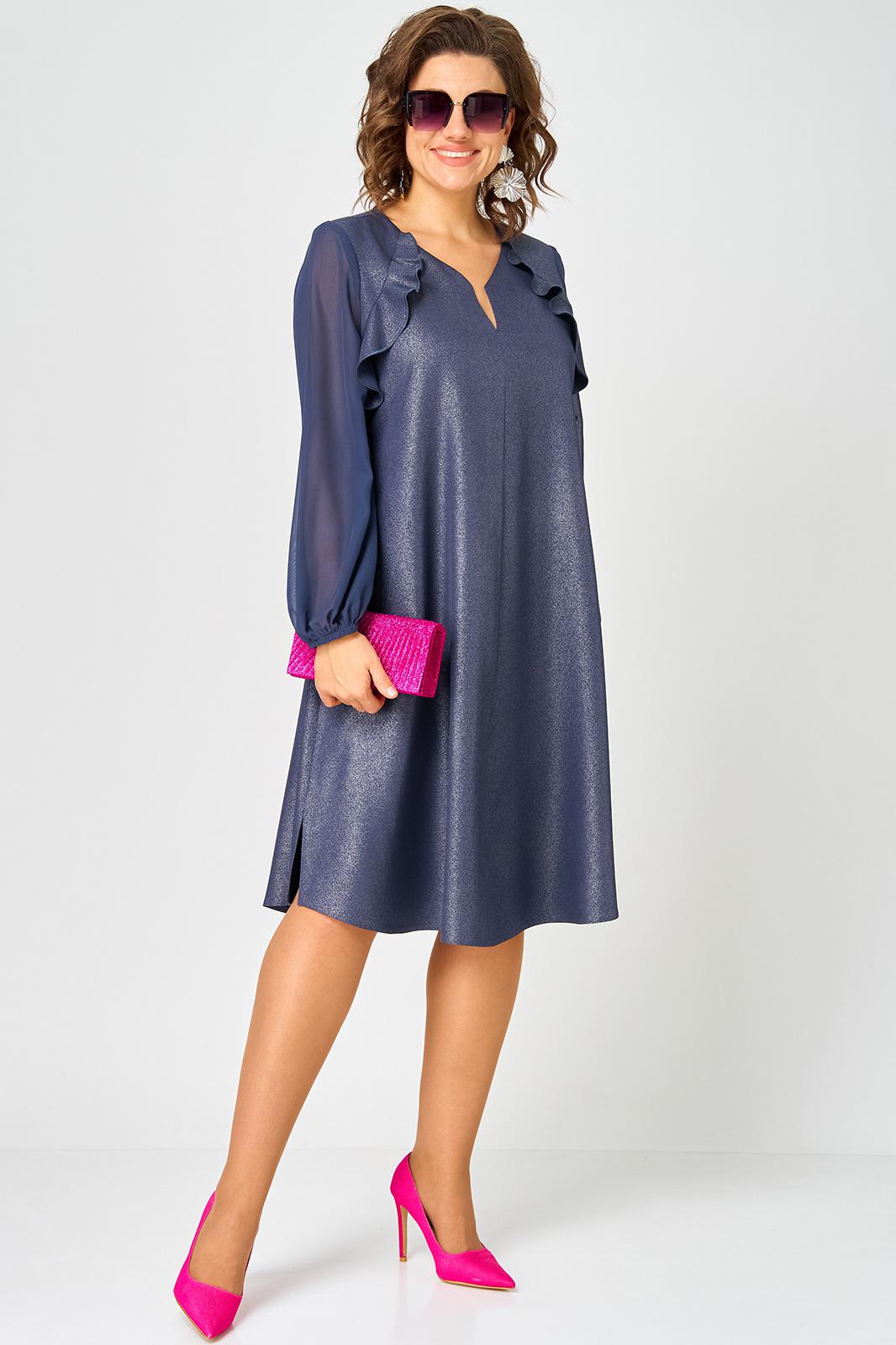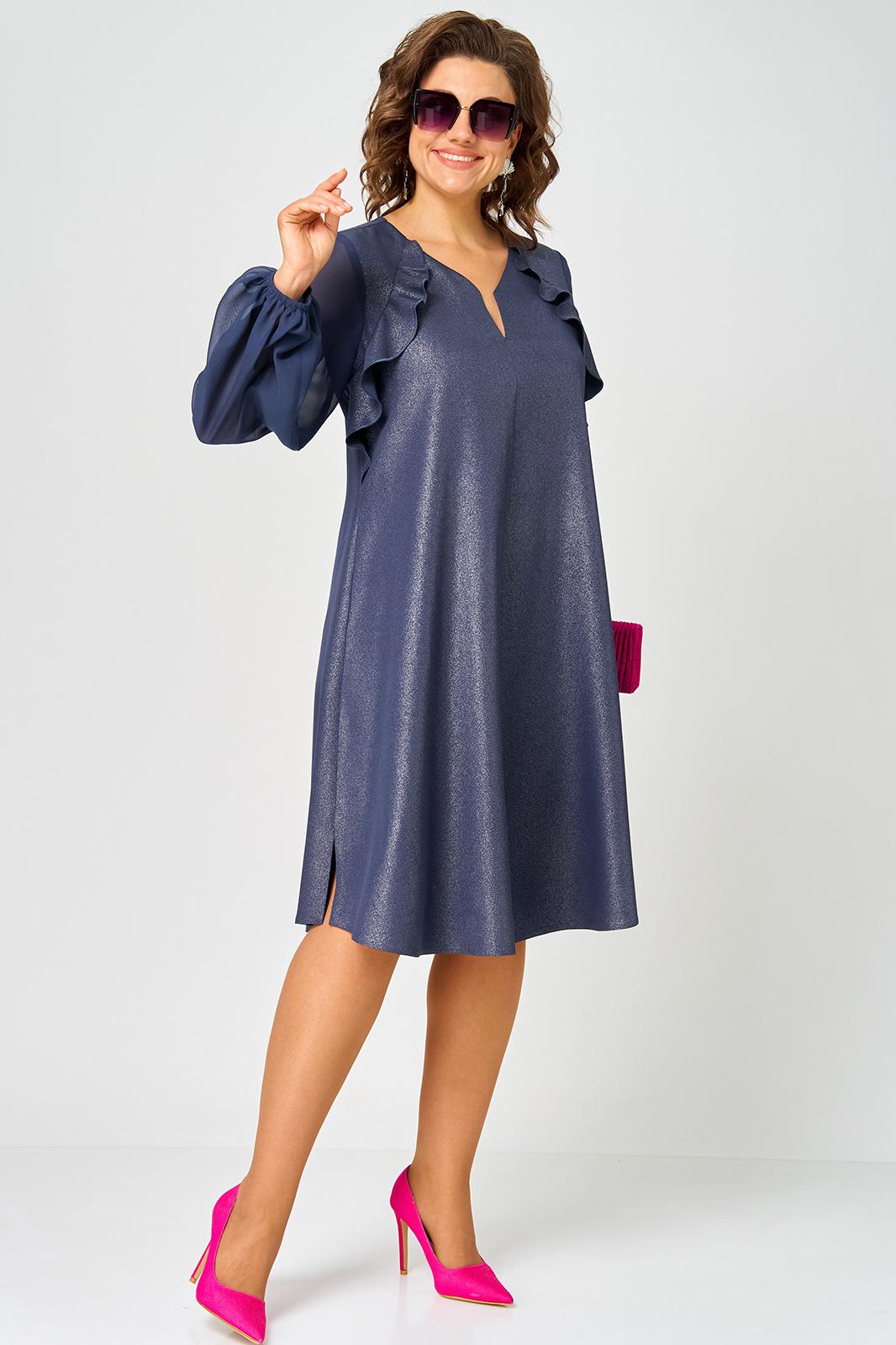 Платье красивое нарядное женское шикарное А-образного силуэта расширенное к низу выполнено из плательной ткани пропитанной блестками (не осыпаются) в сочетании с шифоном. Вырез горловины фигурный на обтачке, рукав втачной из шифона по низу на резинке. По полочке кокетки с притачным воланом входящим в боковой шов. В боковых швах обработаны небольшие разрезы.