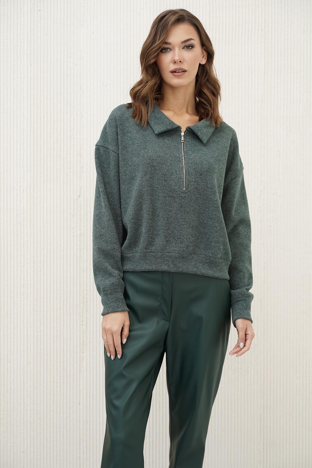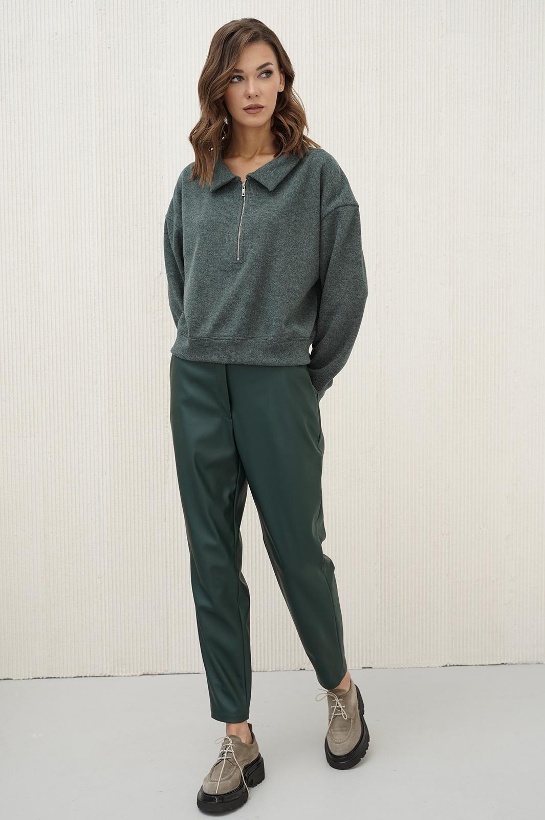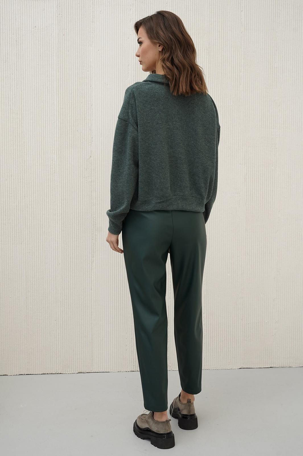 Джемпер из трикотажа... Это одна из базовых вещей осенне-зимнего сезона. Он тёплый, удобный и невероятно комфортный. К тому же, настолько универсален, что его можно стилизовать абсолютно разными способами. Для создания элегантного и дерзкого лука мы дополнили его брюками из эко-кожи. Свободный покрой с заниженной линией плеча, рукав рубашечного покроя на отрезной манжете, воротник классический, по центру полочки частичная застёжка-молния. По низу джемпера - отрезной пояс.