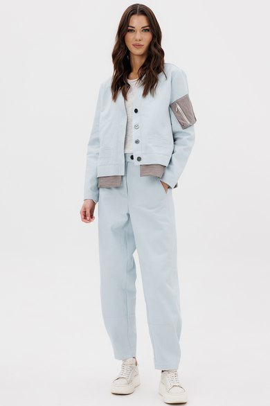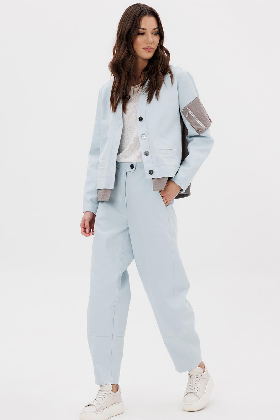 Невероятный брючный комплект в стиле street-casual. Его выделяет полная свобода, удобство и комфорт в тандеме с неповторимостью, ненавязчиво подчеркивающей индивидуальность. Определенную эффектность образу придает использование разнофактурного полотна гармонично сочетающегося цвета.