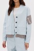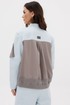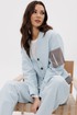 Жакет свободный, упрямленного силуэта, втачного покроя с центральной застежкой на притачной планке. Полочка с прорезным карманом с листочкой. Спинка с отрезной кокеткой, мягкой складкой и притачным поясом кашкорсе в два слоя. Рукав одношовный, с локтевой вытачкой и накладным карманом-пеналом с молнией на левом рукаве.