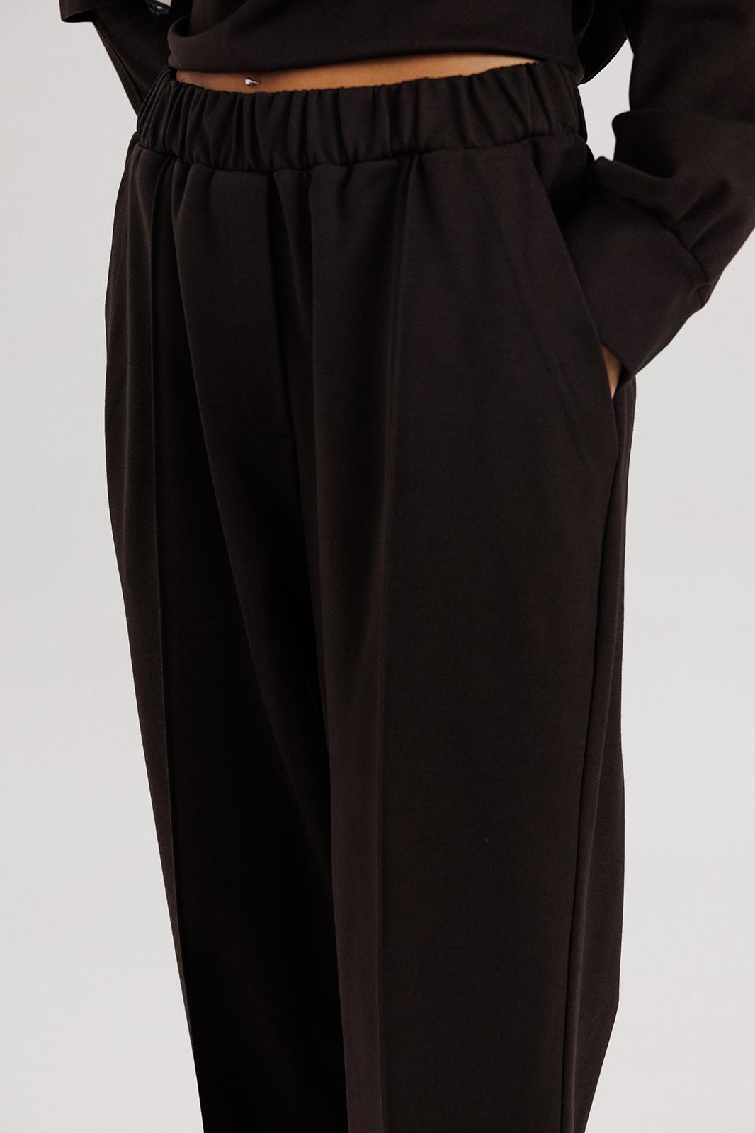 Брюки в расслабленном стиле, на эластичном поясе с наклонными боковыми карманами и кантом-защипом по передним половинкам брюк.