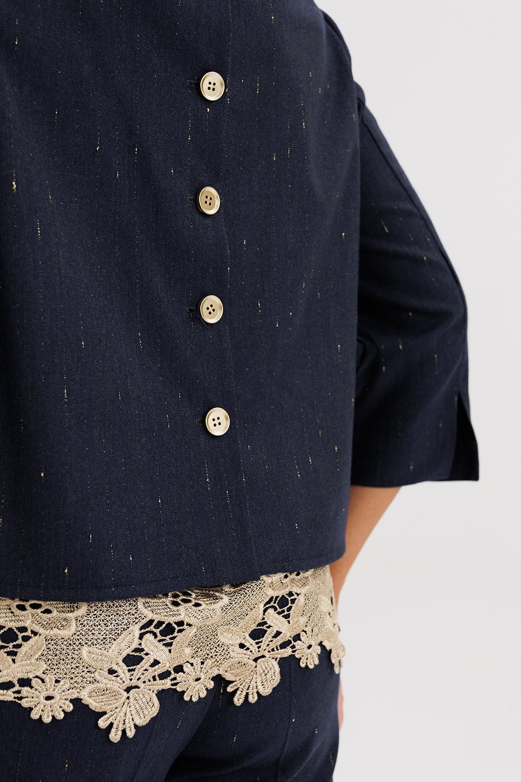 Утончённый и женственный костюм, созданный для особых случаев и стильных будней. Мягкое мерцание люрексовой нити в поливискозной ткани придаёт образу изысканное сияние, а продуманный крой обеспечивает идеальную посадку и комфорт.
