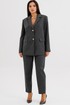 Брюки классического покроя с высокой посадкой на притачном поясе со шлёвками, зауженные. Застежка брючная на потайной крючок и молнию. Передние половинки брюк с мягкими складками-защипами и наклонными боковыми карманами. Задние половинки брюк с вытачками и прорезными карманами с листочками.
