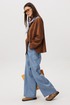 Брюки baggy из денима, с интересным худящим эффектом, достигаемым за счет отрезной боковой части, смещенной на передних и задних половинках.