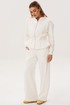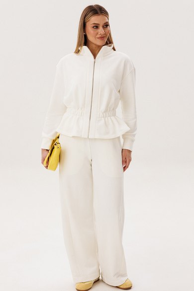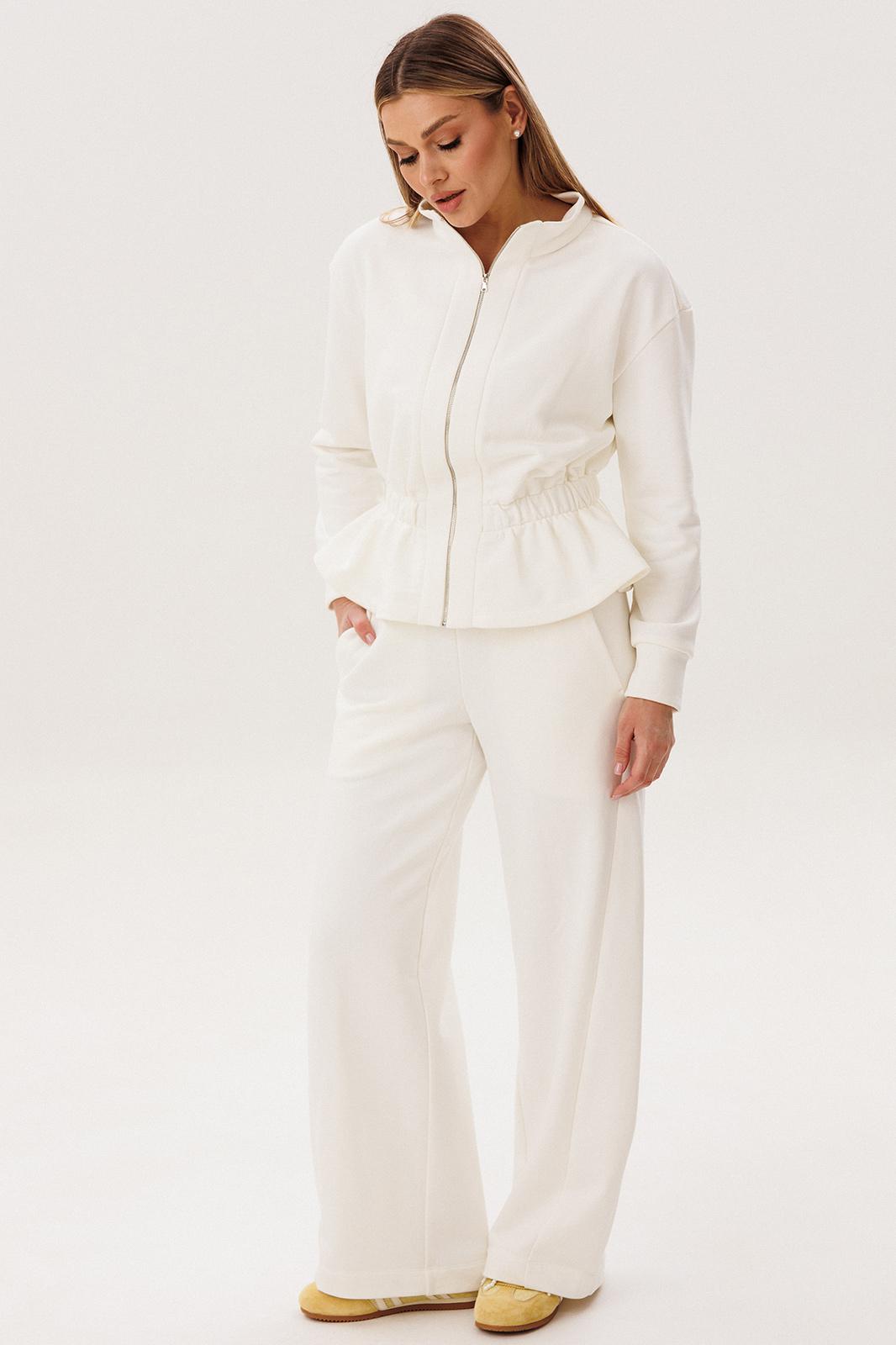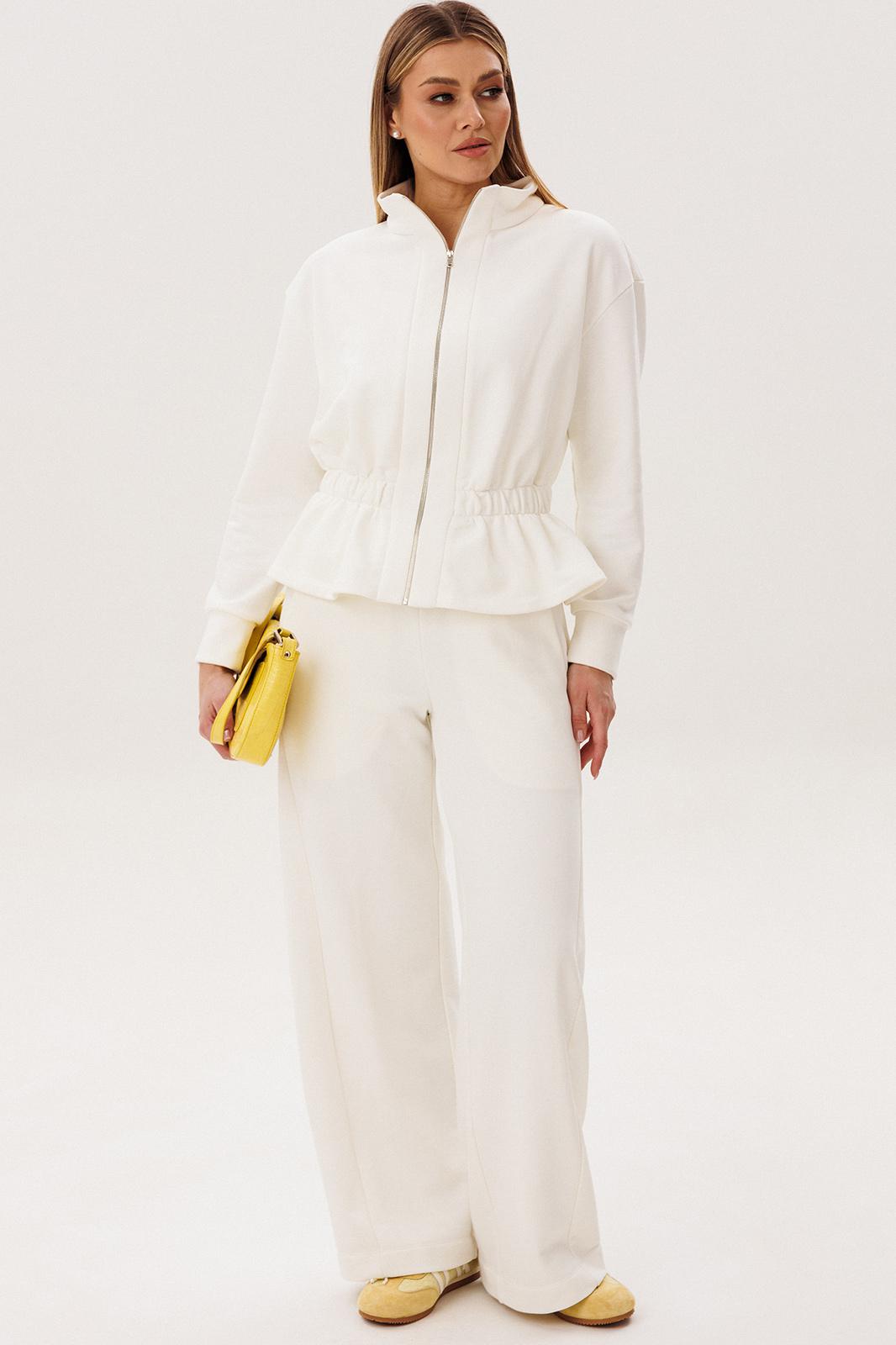 Куртка подчёркивает силуэт за счёт аккуратной посадки и резинки по талии, а брюки создают вытянутый и элегантный силуэт благодаря прямому крою.