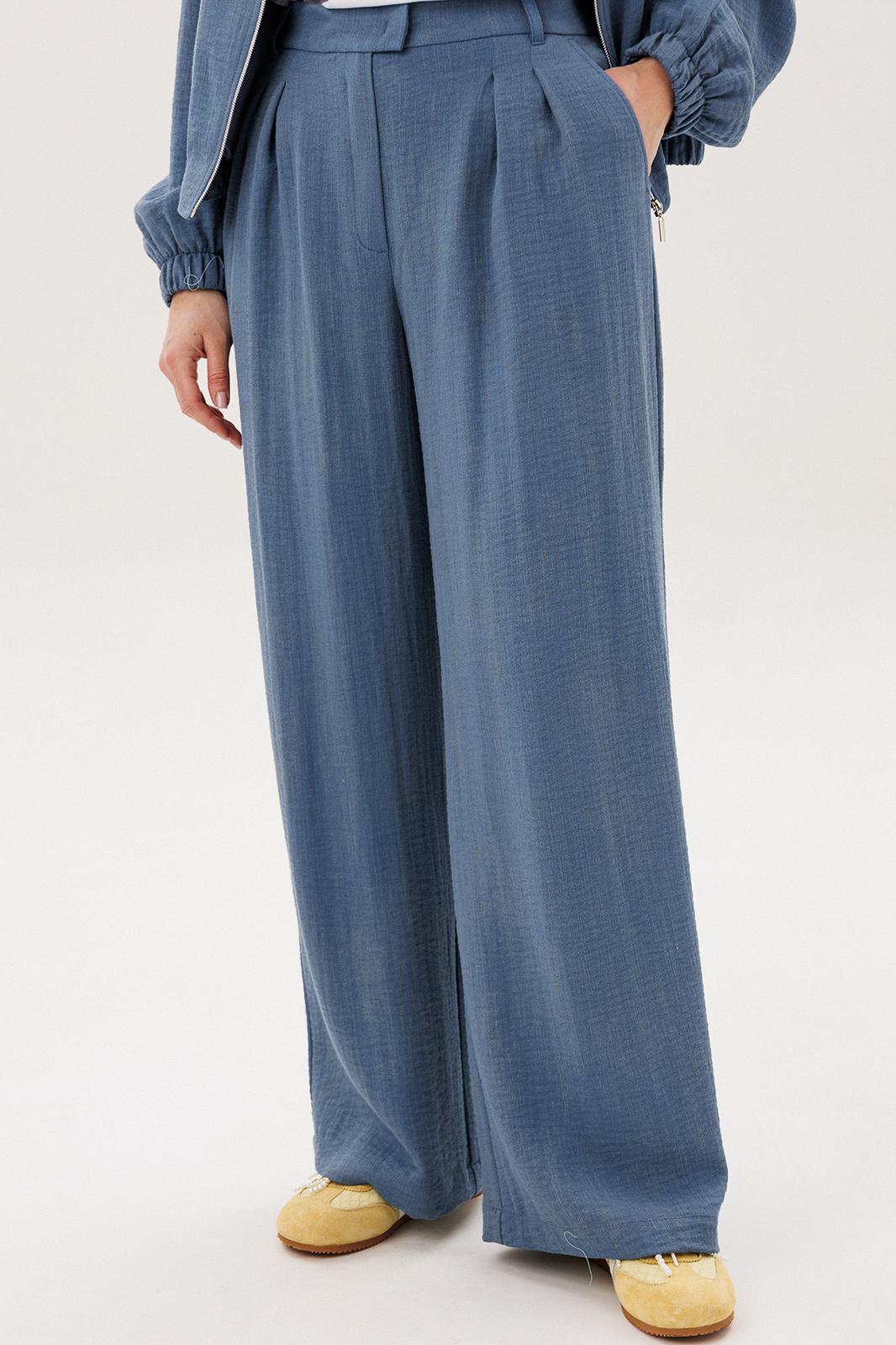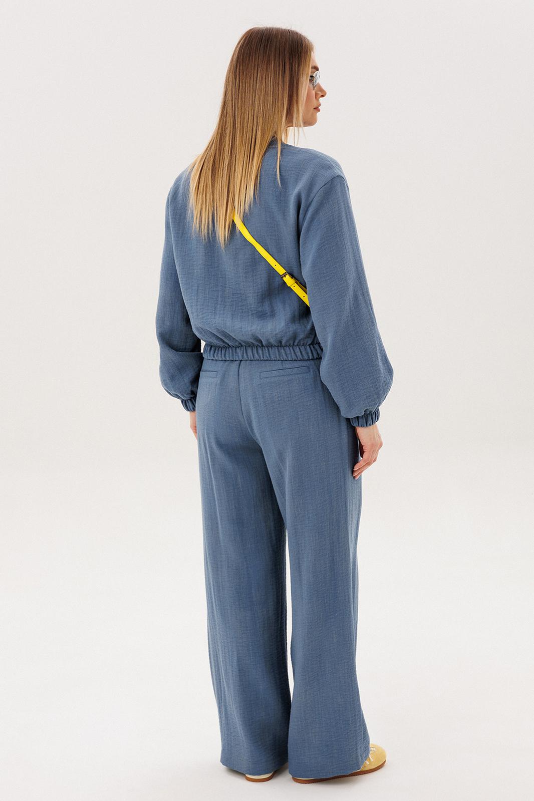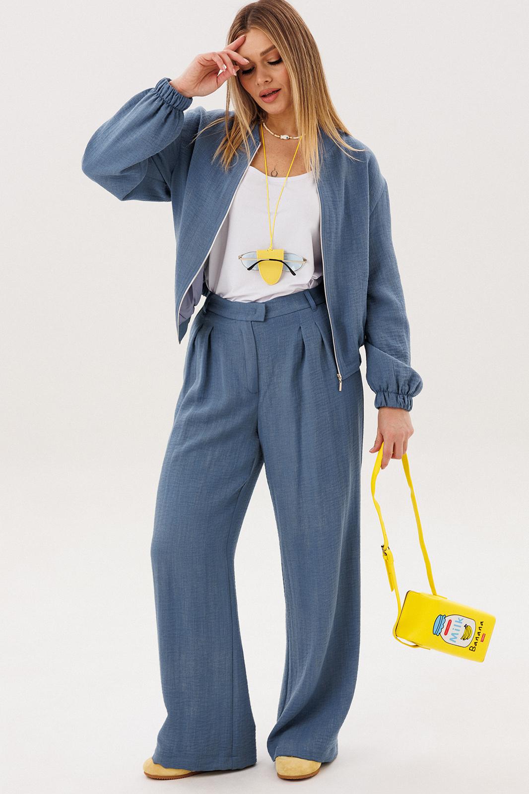 Стильный брючный комплект в благородном голубом оттенке — универсальное решение для современного гардероба. Лаконичный дизайн и свободный крой создают лёгкий, элегантный образ, который идеально подходит для повседневной жизни и городских прогулок.