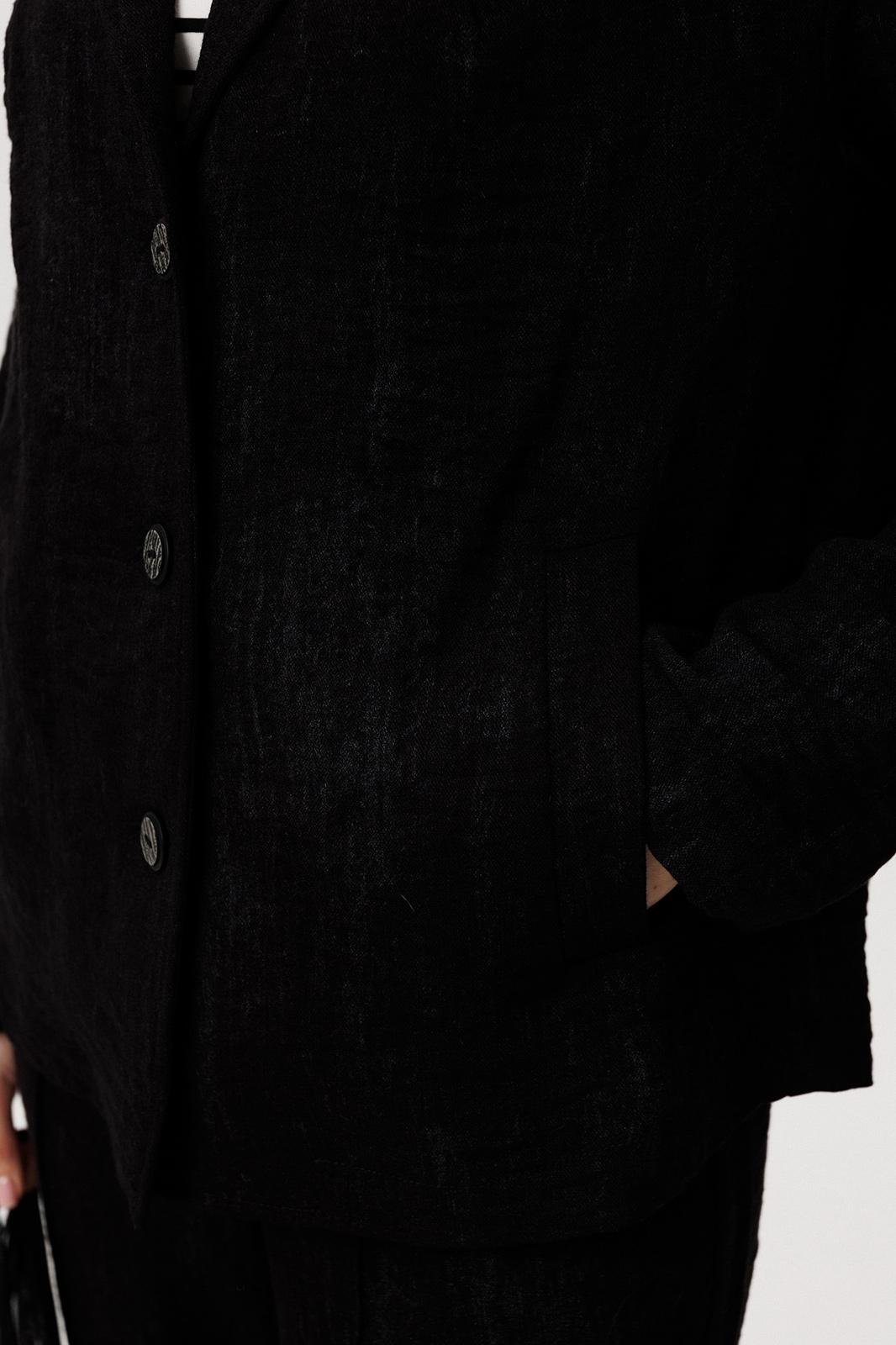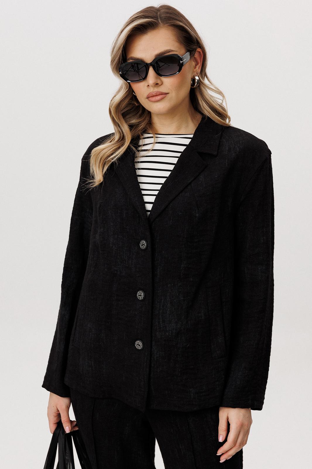 Свободный жакет прямого кроя с классическим лацканом и застёжкой на пуговицы