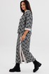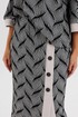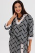 Свободный упрямлённый джемпер с вырезом поло, воротником и отделкой из контрастного трикотажного полотна.