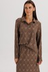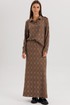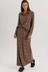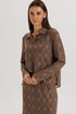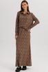 Принт — тонкий геометрический узор в тон ткани, который придаёт образу глубину и динамику.