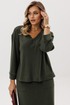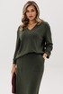 Свободный упрямлённый джемпер с заниженной линией плеча, V-образным вырезом и рукавом длиной 7/8. По горловине и низкам рукавов - отделочные полоски.