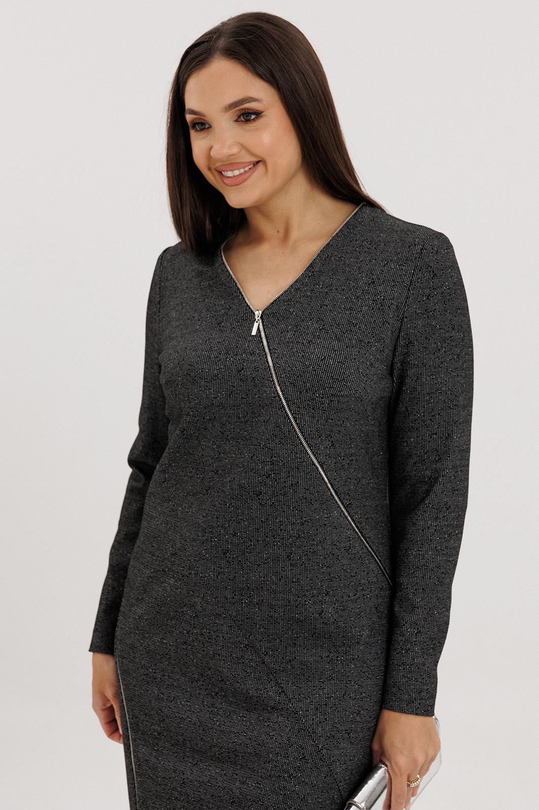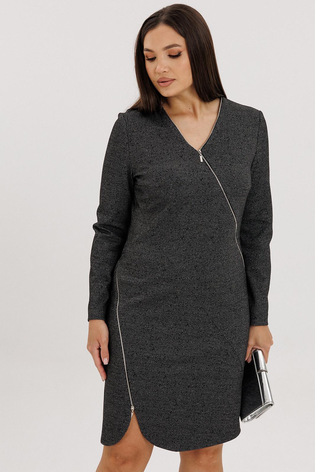 Фигурные рельефы и втачные детали подчёркивают женственный силуэт, обеспечивая идеальную посадку по фигуре. Асимметричная декоративная молния добавляет современный акцент и визуально вытягивает линию тела.
