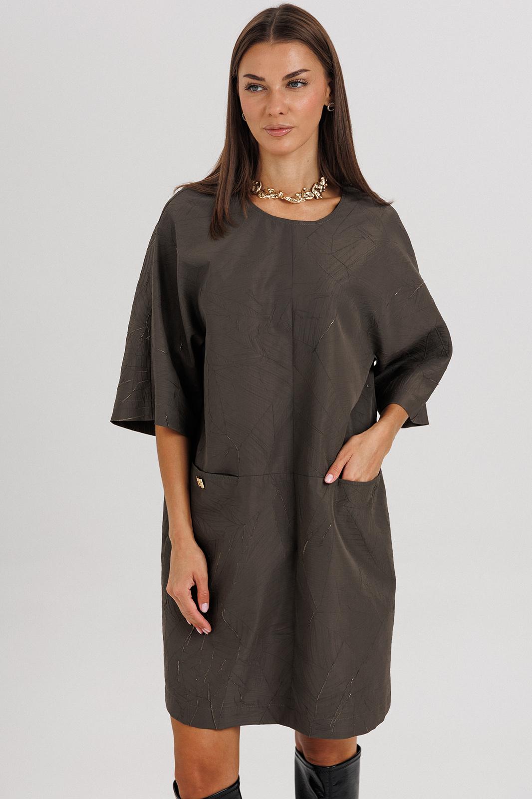 Цельнокроенный покрой и свободная посадка создают лаконичный и элегантный образ, подходящий для любого типа фигуры. Рукава длиной до локтя добавляют лёгкости и делают силуэт визуально утончённым. Округлый вырез горловины подчеркивает женственность и универсальность модели.