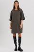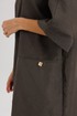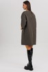 Платье имеет декоративные металлические элементы у линии карманов, что придает образу современный акцент. Универсальная длина до колена позволяет сочетать модель как с высокими сапогами, так и с ботильонами или обувью на плоской подошве.