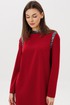 Свободный упрямленный силуэт, покрой-полуреглан, воротник-стойка, застежка по центру спинки на потайную молнию. По линиям пройм на полочке и спинке, стойка из отделочного полотна в пайетку. Полочка с нагрудной вытачкой.
