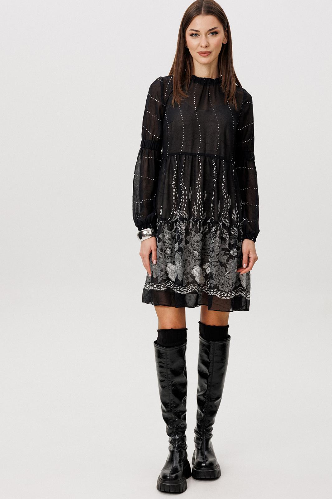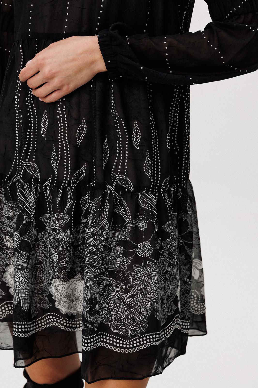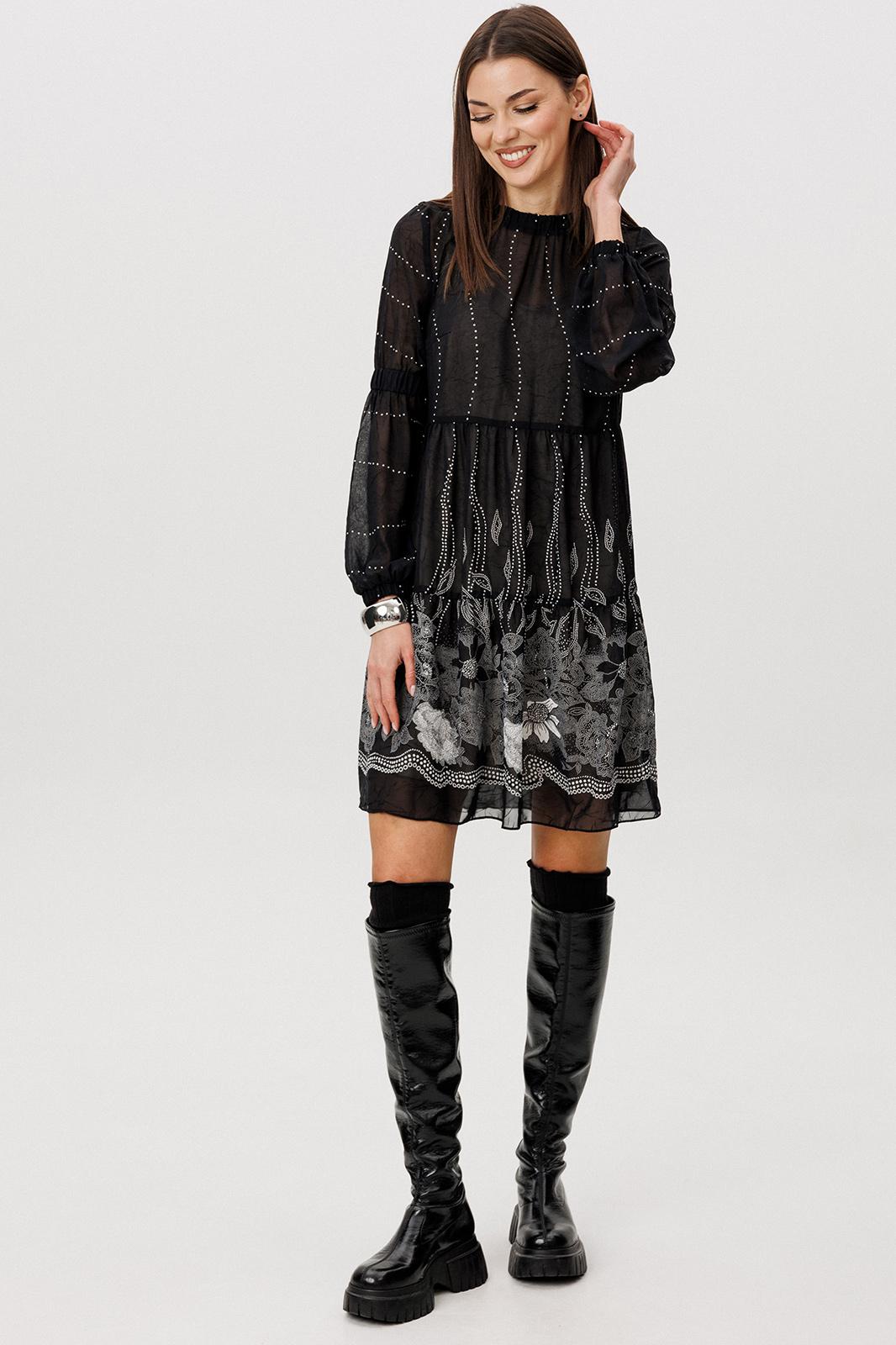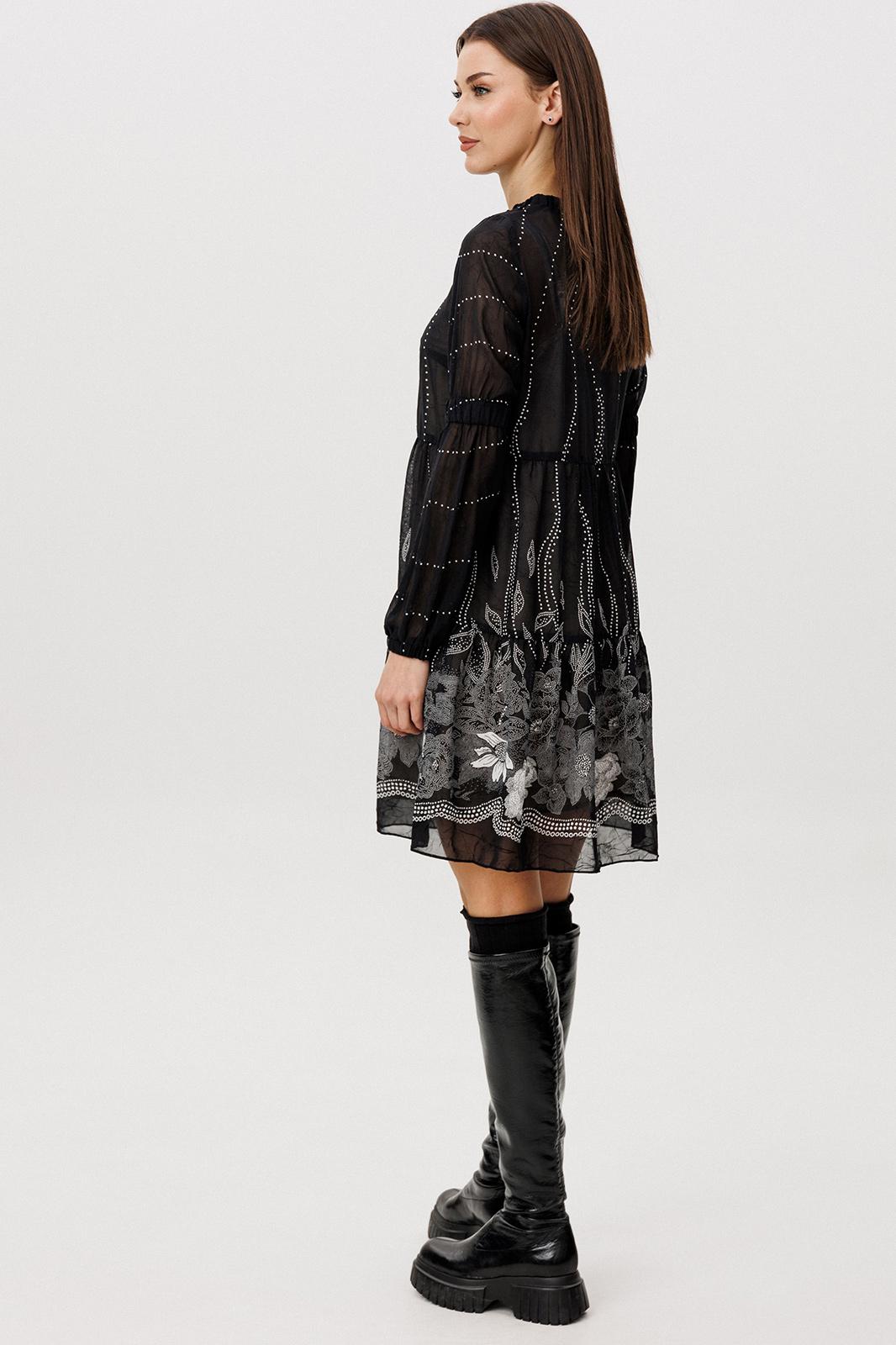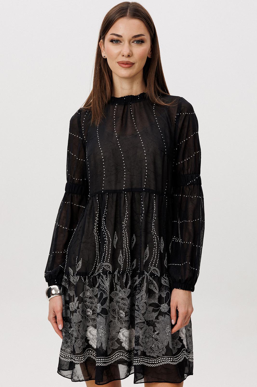 Шифон - это идеальная ткань для пошива весенних платьев. Платья, выполненные из этого материала, выглядят элегантно и игриво, особенно если это платье в романтическом стиле. Нежное и воздушное, с каскадом расширяющихся воланов с легкой сборкой, свободного силуэта. Рукав втачной из двух частей с эластичной тесьмой в верхней части и по низу. Горловина изделия с декоративной отделкой со сборкой. Длина изделия около 86 см. Длина рукава около 61 см.