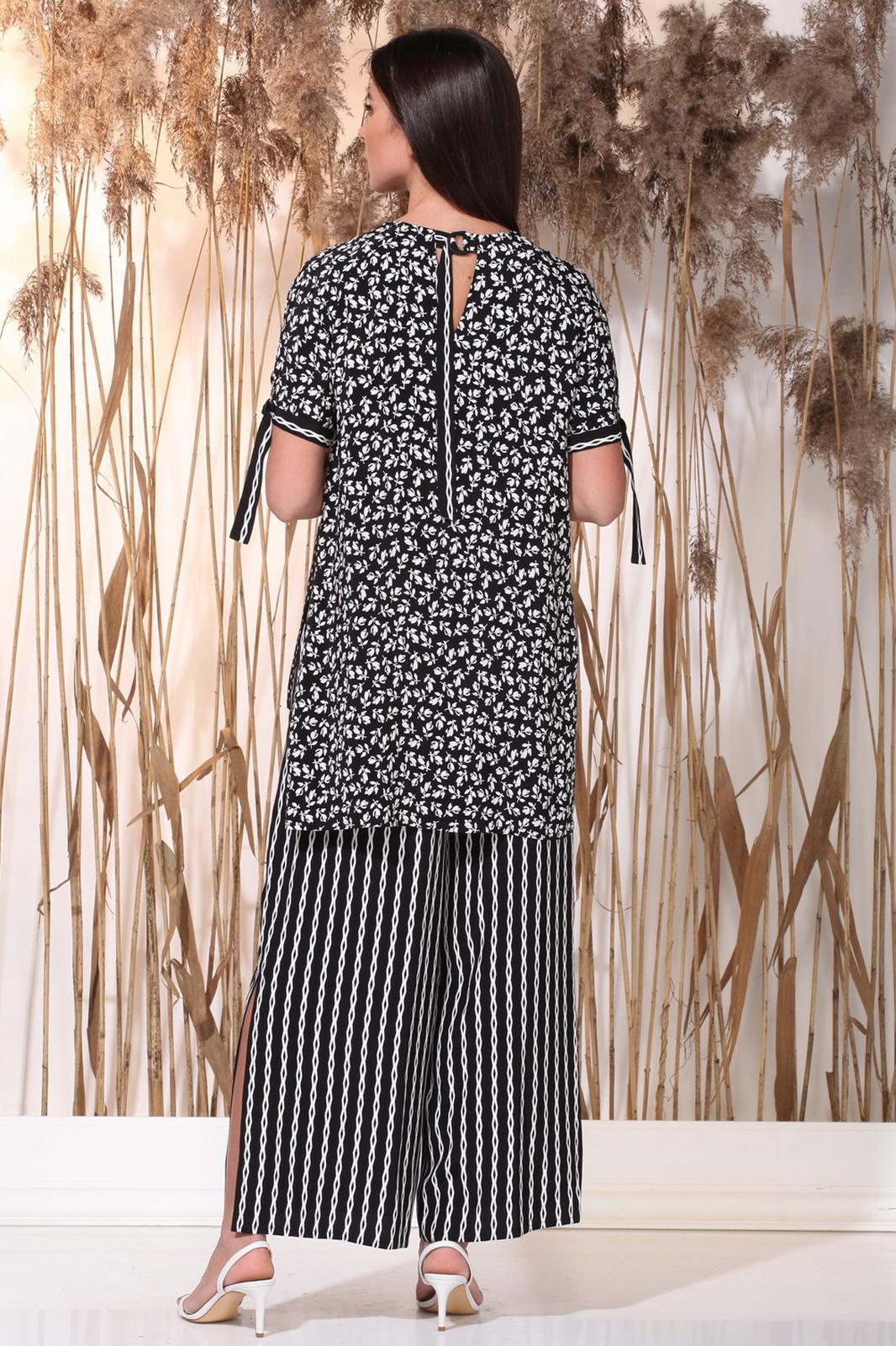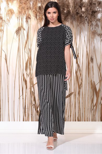 Вид застежки: блузон - металические полукольца, завязка сзади, брюки - резинка в поясе