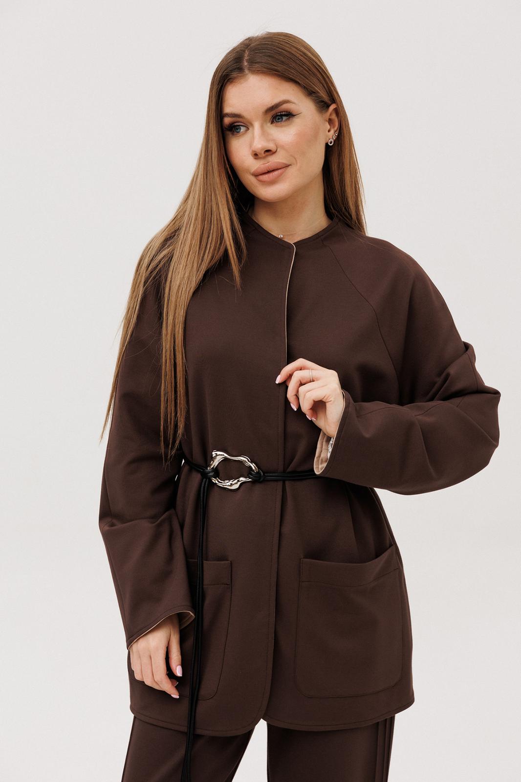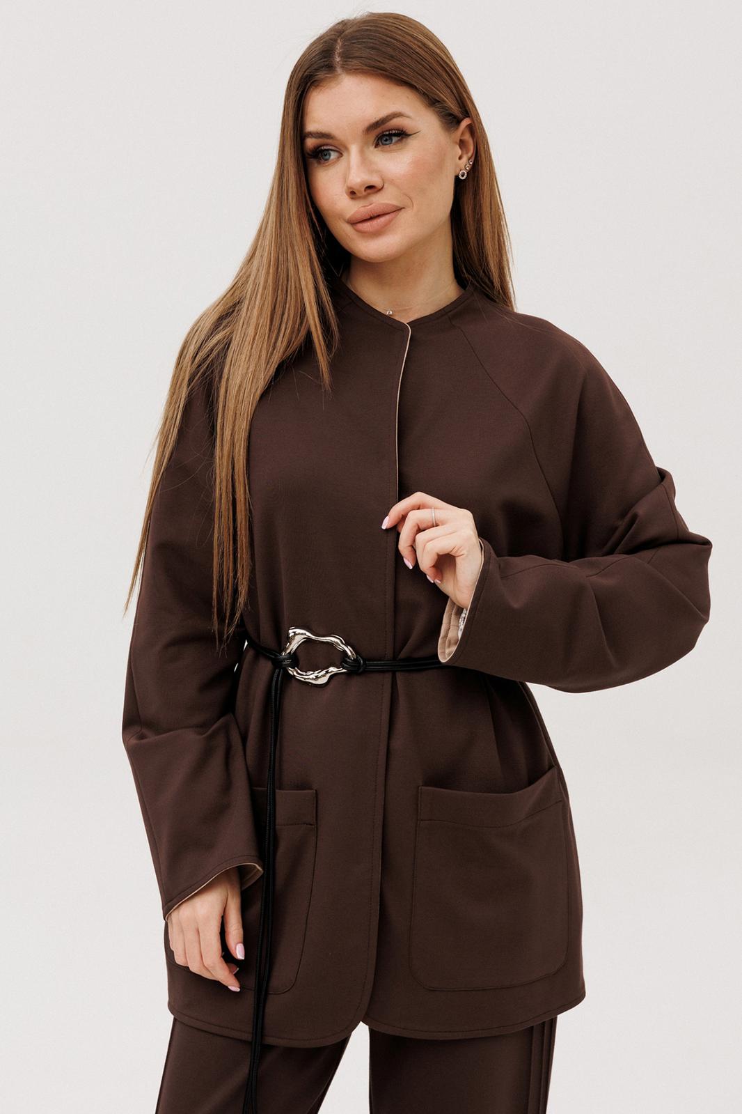 Жакет женский двухсторонний, выполнен из трикотажа двух цветов, свободного силуэта.
