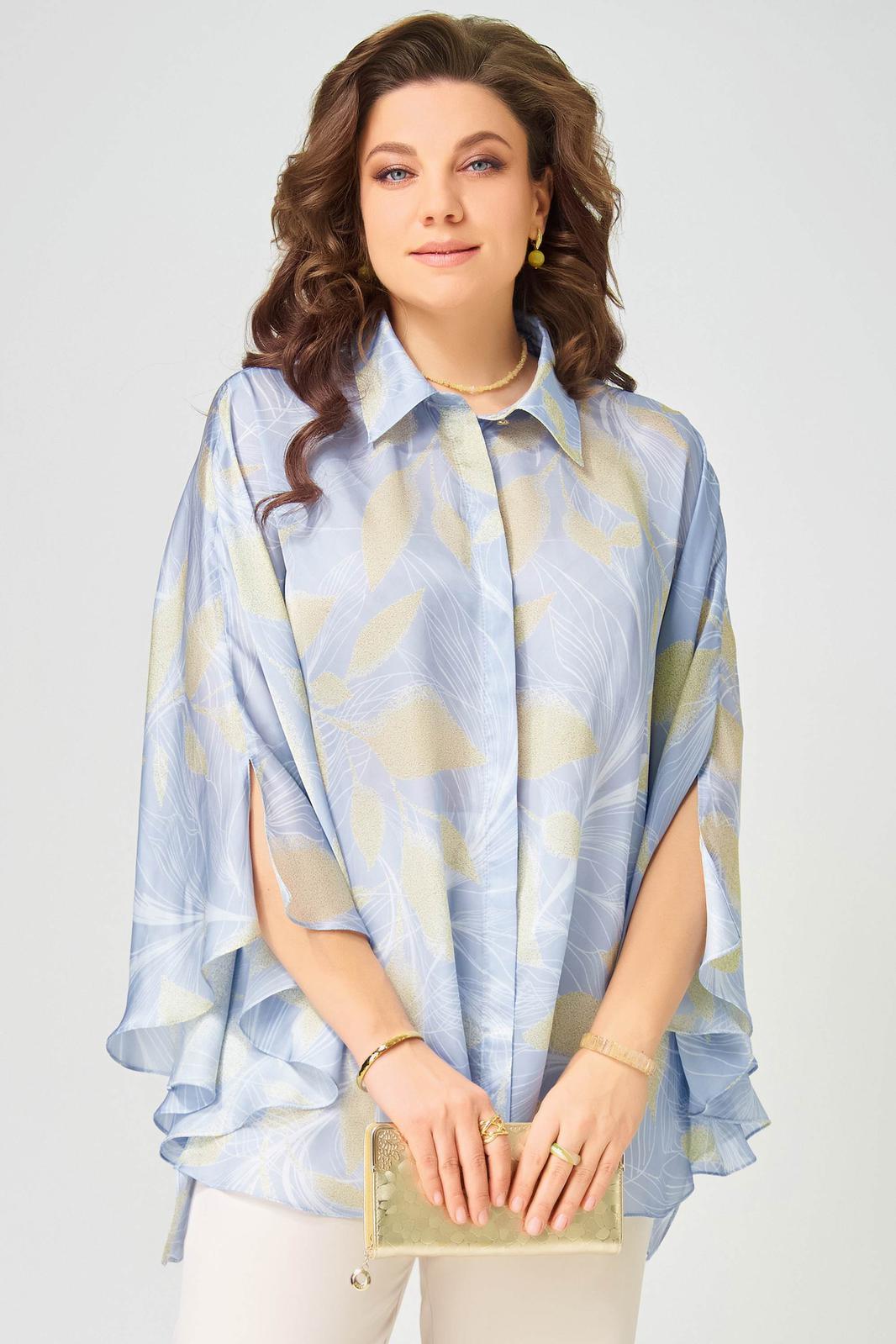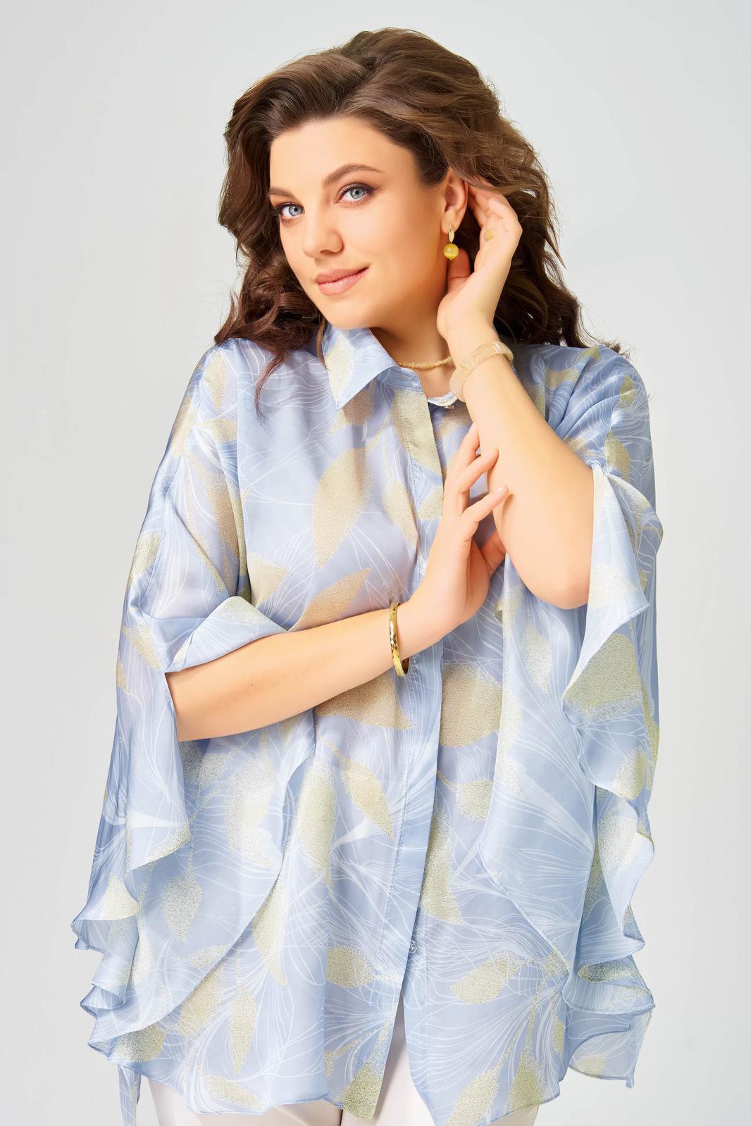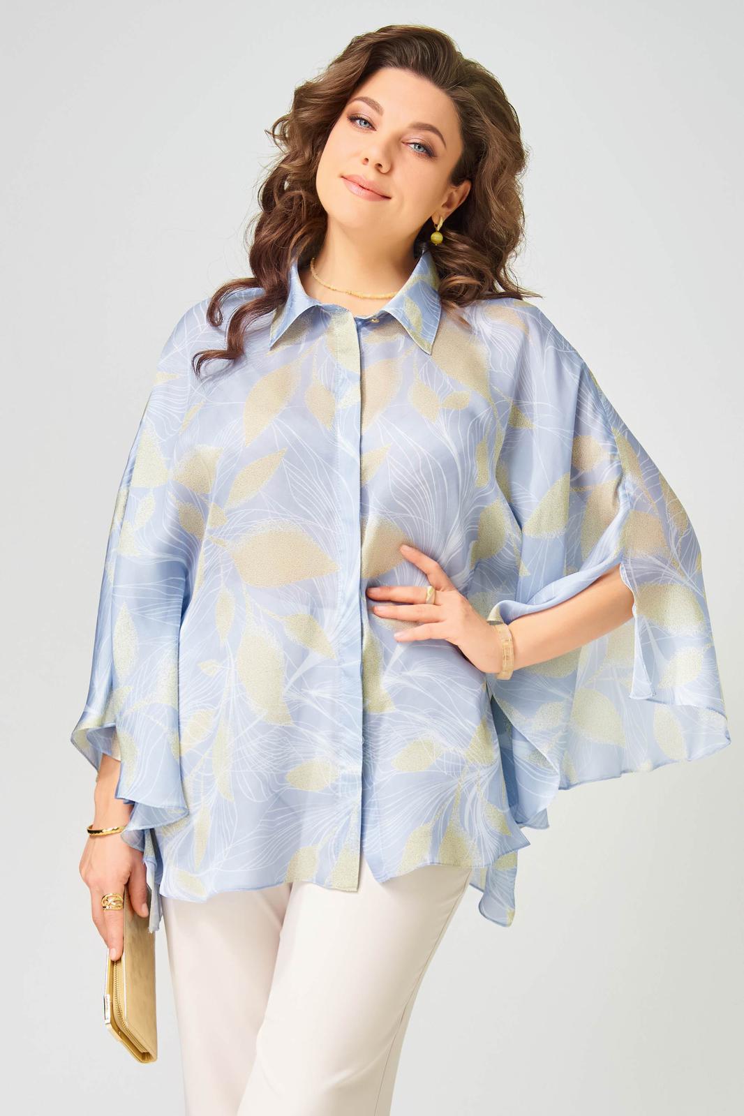 Женская блузка аля-Пугачева Ветрана выполнена из легкой шифоновой ткани. Блузка расширенная к низу. Полочка на потайную застежку на петли и пуговицы. Воротник рубашечного типа на стойке. Низ обработан швом в подгибку. Эта блузка украсит вас на любом празднике или городе. Вы будете королевой!