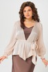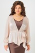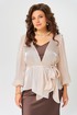 Туника выполнена из текстильной ткани вуаль Аурора. Накидка свободного покроя, без застежки, край борта обработан бейкой, рукава втачные одношовные, низ рукава присобран на венгерку, по окату рукава легкая сборка. Низ изделия и низ рукавов обметан улиткой и застрочен на 0,2 мм.