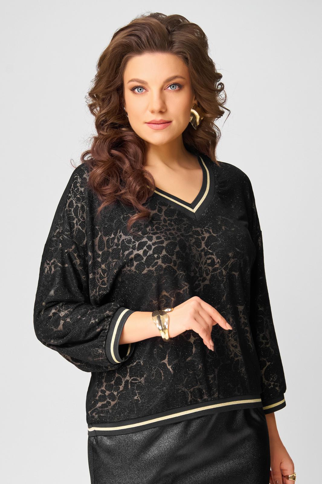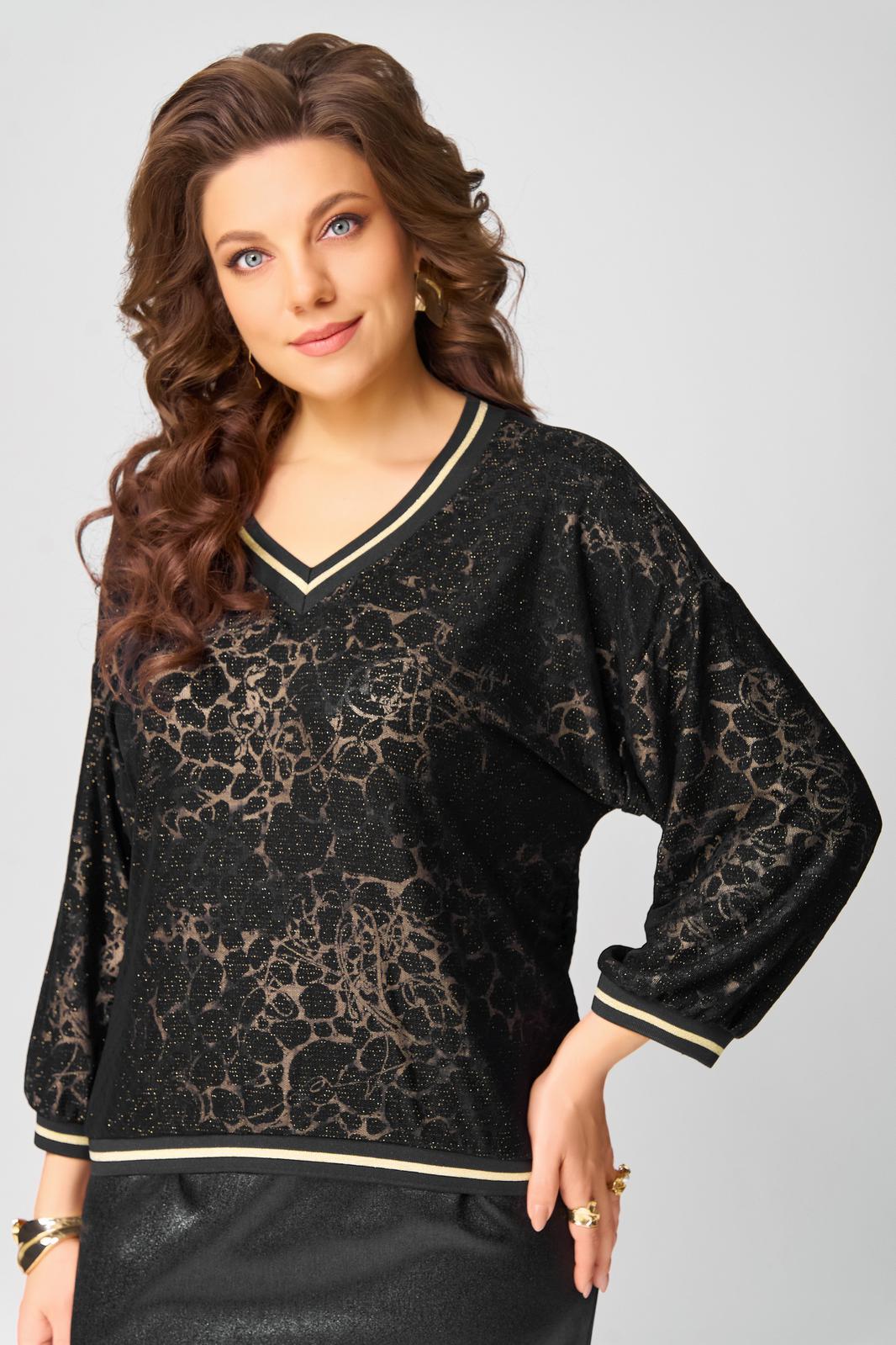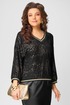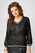 Нарядный джемпер Ираида свободного покроя выполнен из мягкого трикотажного полотна с декоративной сеткой, создающей эффект многослойности и воздушности.