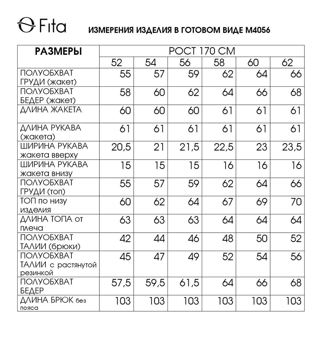 - Размерный ряд: 52-62