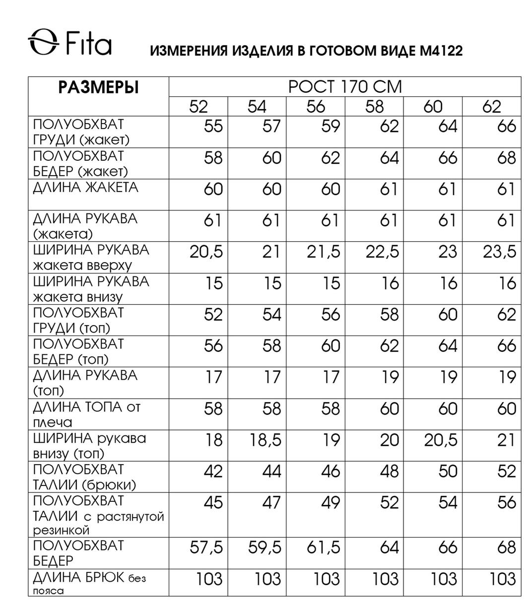 - Тип ткани: жакет: 60% вискоза, 36% полиамид, 4% спандекс; брюки: 46% вискоза, 40% полиамид, 14% полиэстер; джемпер: 70% полиэстер, 30% вискоза;