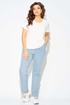 Джинсы представляют собой зауженные к низу брюки со средней посадкой. Они оснащены застежкой на молнию и пуговицы, а также карманом в боковом шве. Сзади пояс дополнен резинкой для удобной посадки.