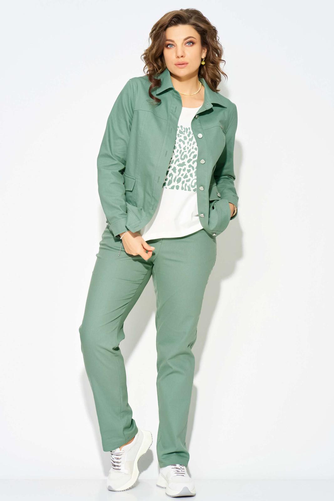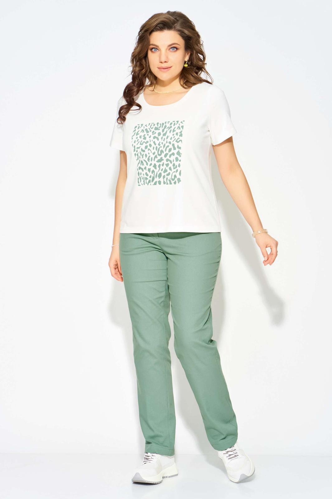 Джемпер — это голос комплекта, его эмоциональный центр. Прилегающий силуэт мягко очерчивает фигуру, а вытачка по груди — как легкий штрих скульптора. Горловина, обработанная планкой, завершает образ сдержанно и элегантно. Но главное — печать «Леопард» на полочке. Это не просто принт, это вызов, энергия, дикая грация, которая прячется под спокойной поверхностью.