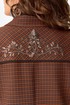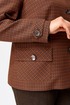 Женский стильный жакет Венциана из клетчатого текстиля, полностью на подкладке, с элегантным полуприлегающим силуэтом. Его дизайн отличает однобортная застежка на пуговицы и классический отложной воротник. Передняя часть изделия искусно оформлена нагрудными вытачками и отрезными бочками, а верхняя часть полочки украшена кокеткой с вшитым декоративным кантом. Функциональные накладные карманы с клапанами также застегиваются на пуговицы. Спинка имеет средний шов и отрезную кокетку сверху, также с декоративным кантом. Двухшовные втачные рукава завершаются декоративными патами на пуговицах.