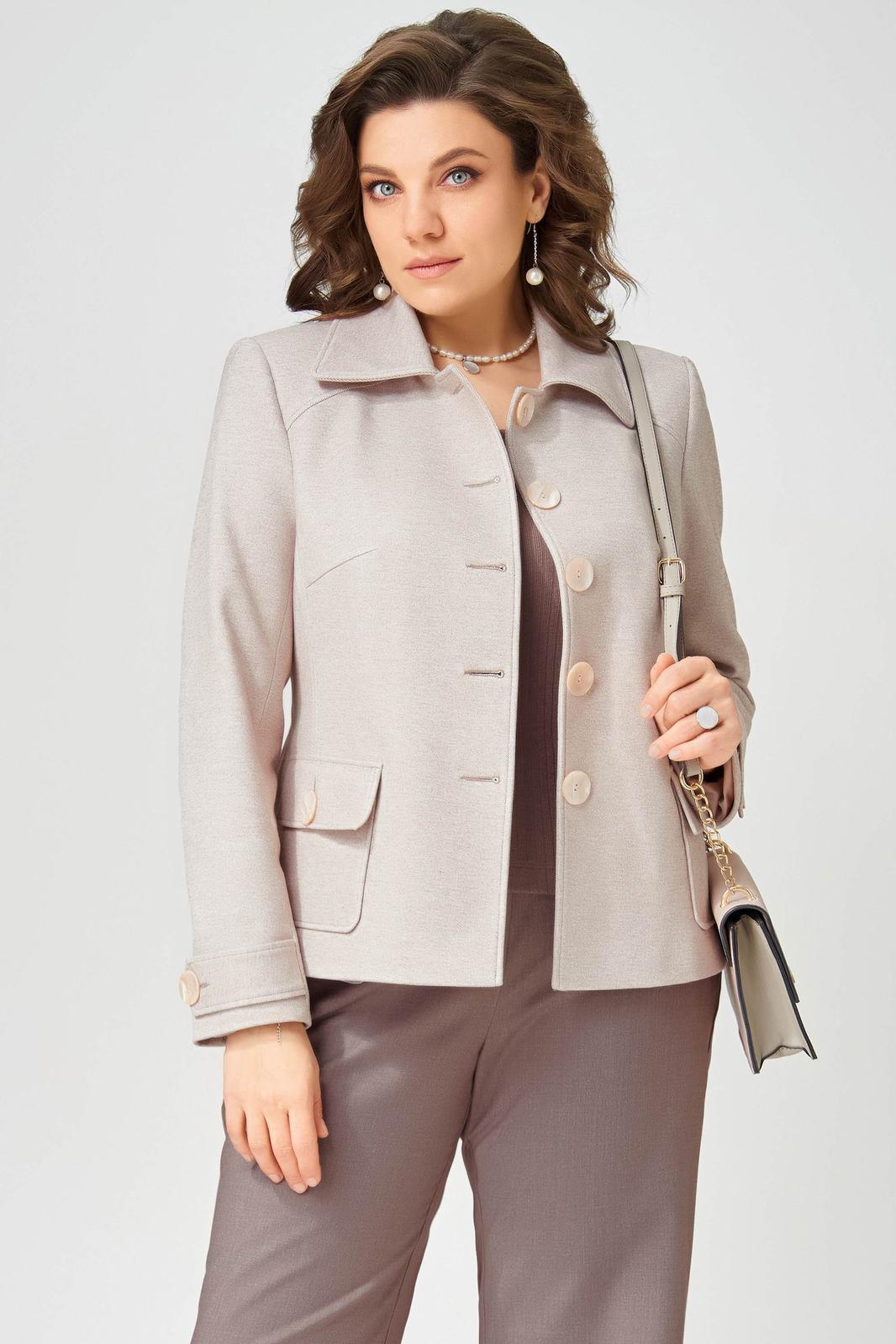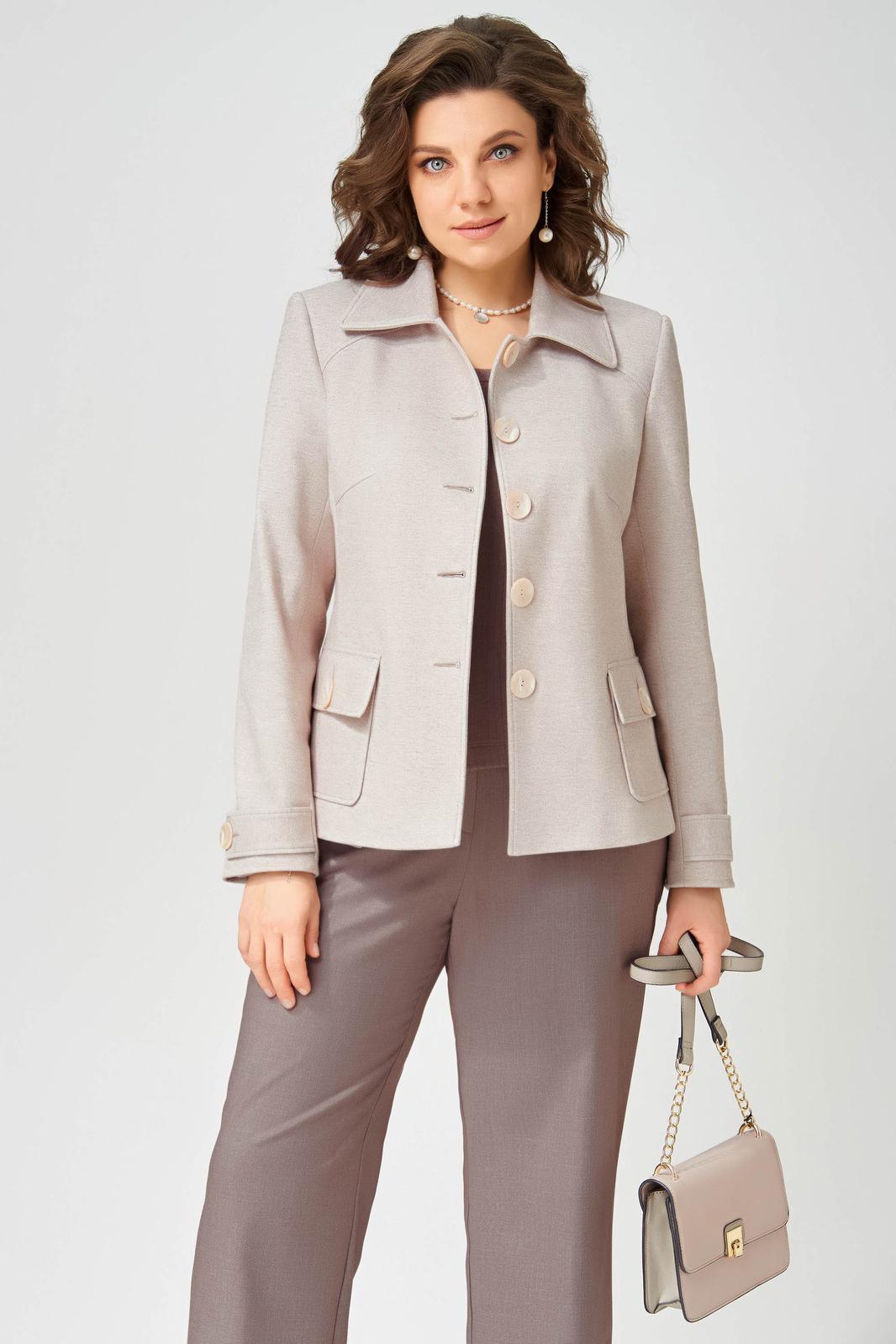 Женский стильный жакет Венциана выполнен из пальтово-костюмной ткани. Жакет на подкладке, полуприлегающего силуэта. Кокетки и накладные карманы с клапанами придают модели архитектурную чёткость. Двухшовные рукава с патами завершают образ с ноткой изысканной строгости.