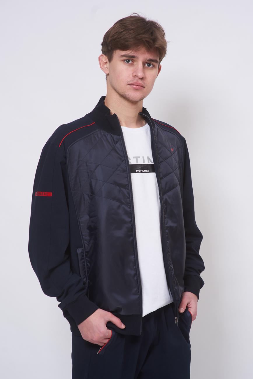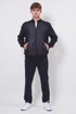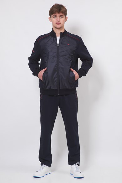 Технологичный и универсальный спортивный костюм. Свободный крой обеспечивает легкость и свободу движений. Модель предназначена для занятий спортом, активного отдыха. Воротник-стойка, пояс брюк на эластичной резинке, регулировка пояса шнурком, два кармана на молнии на куртке и два боковых кармана на брюках.