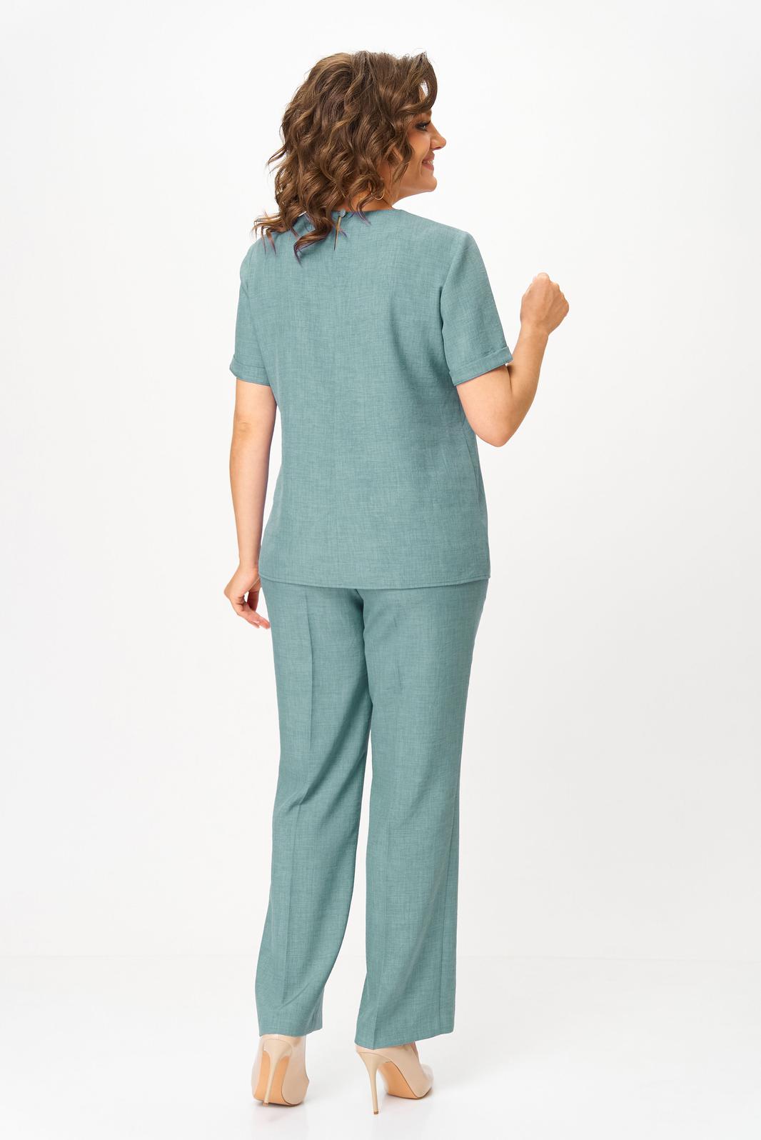 Костюм брючный 1640 мята Fortuna. Коллекция бренда Шан-Жан предлагает элегантный брючный костюм, выполненный из легкого и приятного на ощупь полиэстера. Его фасон включает втачной рукав с манжетом и прямые брюки с застежкой на молнию и пуговицу. Резинка, вставленная по бокам в поясе брюк, обеспечивает лучшую посадку. Верхняя часть имеет нагрудные вытачки и центральные защипы на блузке, завершающиеся петлей-пуговицей на спинке. Легкая ткань идеальна для комфортной носки в течение дня. Универсальный стиль подходит как для офиса, так и для прогулок и деловых встреч. Мятный цвет добавляет свежести в любом сезоне.