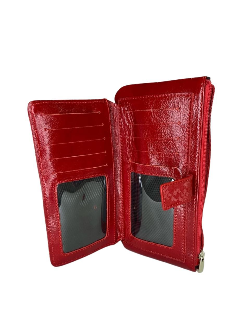 Портмоне закрывается на застежку-молнию, с обьемным карманом на задней стенке,закрывающимся на застежку молнию,с откидным карманом на передней стенке, закрывающимся цупфером на кнопку. С открытым карманом и карманами для визи ток на внутренней стороне отк